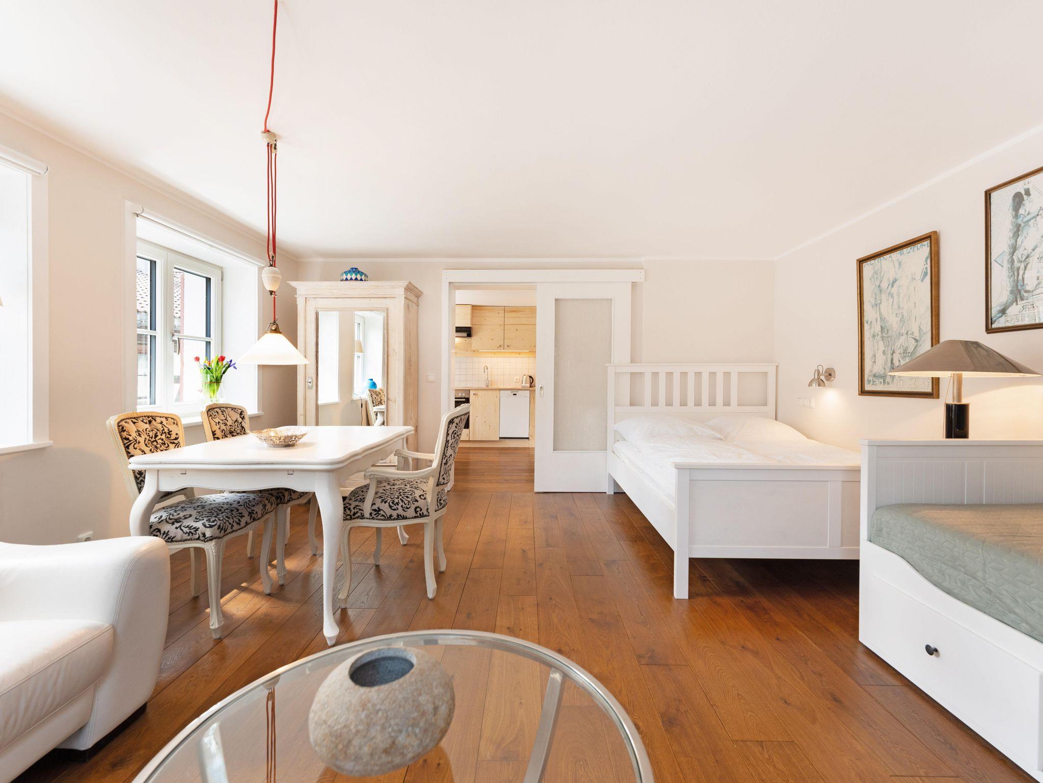 Seit Anfang 2023 finden Urlauber und Geschäftsreisende hier in individuell eingerichteten Ferienwohnungen ein zweites Zuhause auf Zeit. Sie wohnen hier in ganz besonderem Ambiente – mit schönen Möbeln voller Geschichte und Charakter, umgeben von Gemälden, Grafiken und Kunsthandwerk.