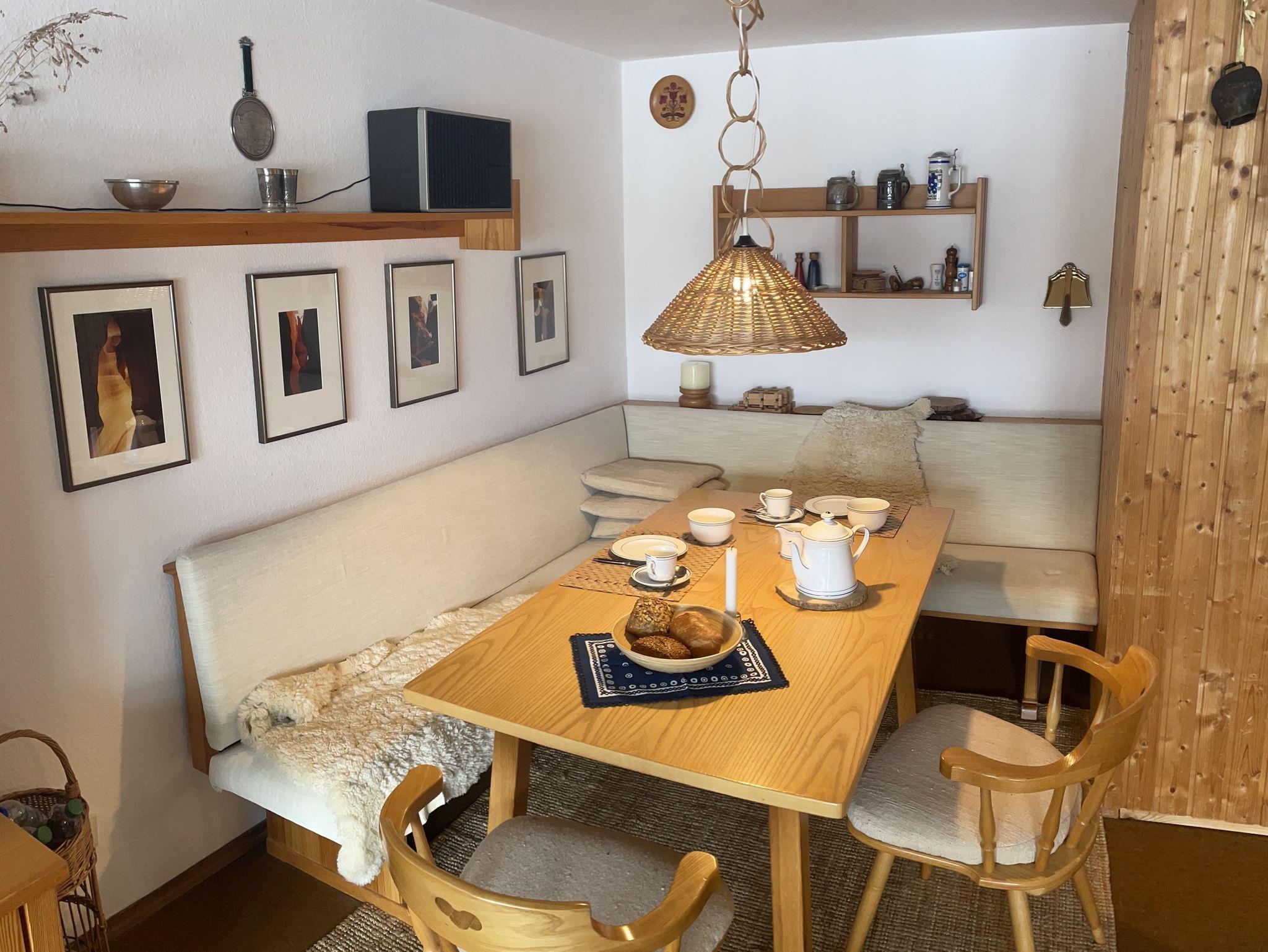Morgens entspannt auf dem Balkon die frische Alpenluft genießen, in der voll ausgestatteten Küche kochen oder gemütliche Abende mit kostenlosem WLAN und Flachbildfernseher verbringen. Ein eigener Parkplatz und ein Skiraum im Haus sorgen für zusätzlichen Komfort.