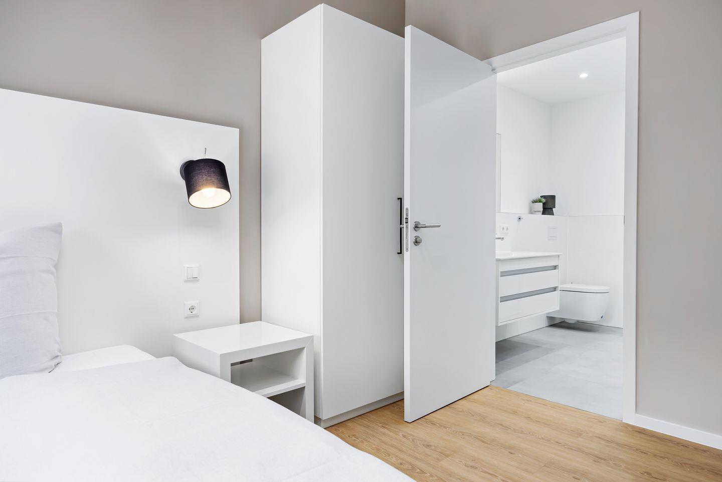 Das größte Schlafzimmer beinhaltet ein modernes Boxspring-Doppelbett (1,80 x 2,00 m), einen eigenen SMART-TV (43 Zoll), einen Kleiderschrank und bietet den Luxus eines ganz privaten, angeschlossen Badezimmers! Die zwei weiteren Schlafzimmer verfügen über Boxspringbetten (Doppelbett mit den Maßen 1,60 x 2,00 m bzw. ein Einzelbett mit den Maßen 0,90 x 2,00 m). In den stilvollen Badezimmern befinden sich Fußbodenheizung, Handtuchwärmer, eine ebenerdige Regendusche, WC, Waschtisch und Föhn.
