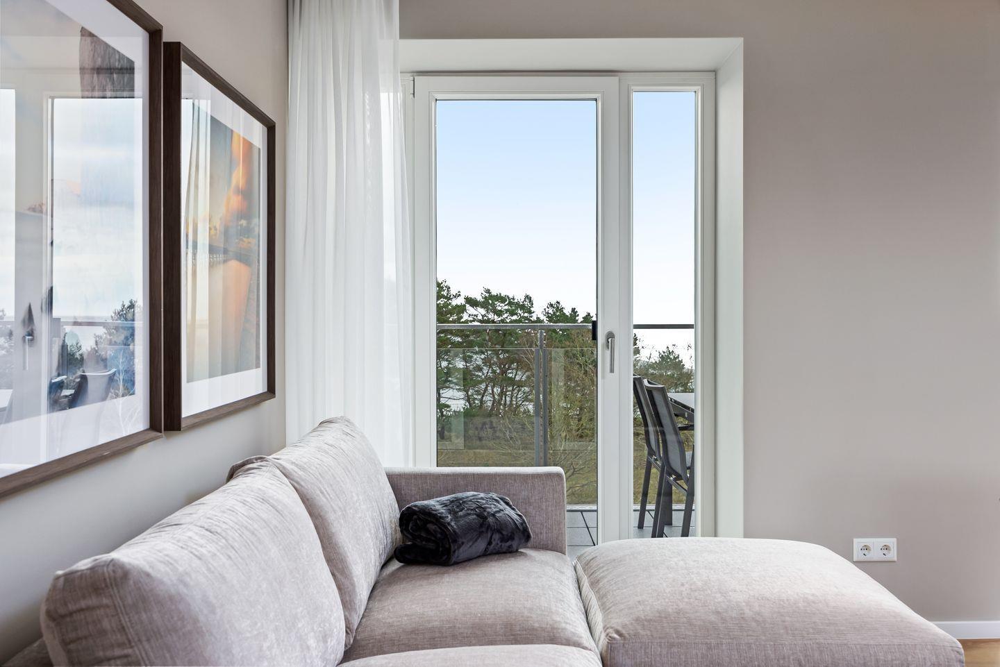 Das lichtdurchflutete Apartment befindet sich in nordöstlicher Lage in der fünften Etage und somit dem obersten Geschoss des Hauses Dänholm. Die Ostsee liegt euch hier zu Füßen - in nur 130 Metern erreicht ihr den feinsandigen, kilometerlangen Südstrand. In der Umgebung warten zahlreiche Ausflugsmöglichkeiten auf euren Besuch: Das Dokumentationszentrum Prora, das Prora-Zentrum, das Oldtimer-Museum Rügen, das NVA-Museum Rügen, die Galileo Wissenswelt Rügen, der Kletterwald Binz-Prora und das Naturerbe Zentrum Rügen mit dem Baumwipfel-Pfad sowie das beliebte Karls Erlebnis-Dorf in Zirkow. Fußläufig befinden sich zwei Bäckereien, einige Bistros sowie ein Restaurant, kleine Mode- und Souvenirgeschäfte als auch ein Fahrradverleih. Eine Segelschule befindet sich in ca. 3 km Entfernung. Im nahe gelegenen Dormero Strandhotel (ca. 800 m) könnt ihr Tagestickets erwerben und den Pool, die Sauna und den Fitnessbereich nach Herzenslust genießen.