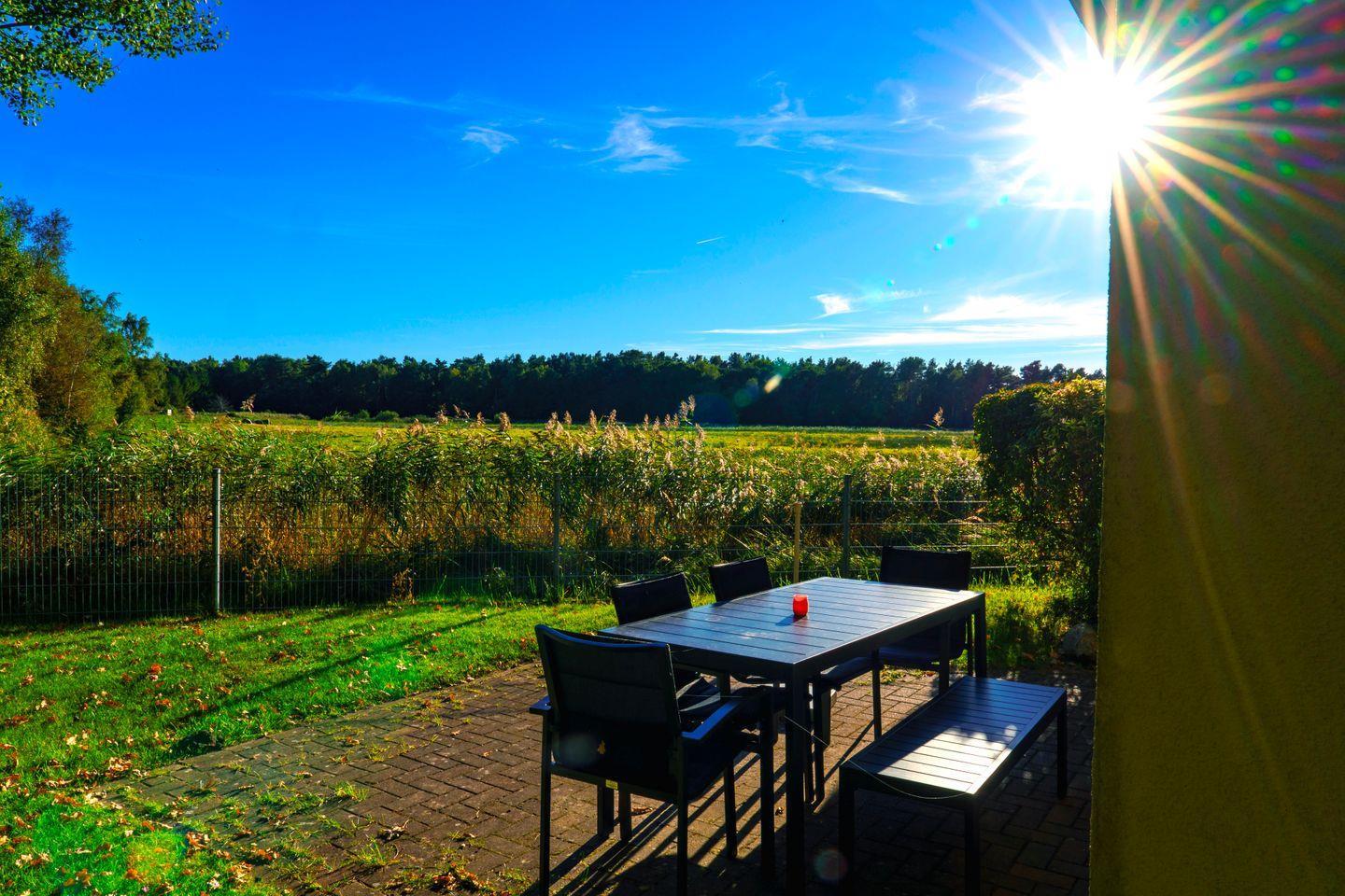 Das Ferienhaus verfügt über zwei separate Schlafzimmer mit Teppichboden, die ausreichend Platz und Stauraum bieten und durch Sichtschutz an allen Fenstern ein hohes Maß an Privatsphäre gewährleisten. Das Wohnzimmer ist offen gestaltet und durch den Fliesenboden pflegeleicht sowie modern ausgestattet. Dank einer großzügigen Sofalandschaft, zwei Fernsehern, DVD- und CD-Player können Sie entspannte Abende verbringen. An warmen Tagen genießen Sie den direkten Zugang zur möblierten Terrasse und zum eigenen Garten, der mit einem Holzkohlegrill, Sonnenschirm und Gartenmöbeln zum Verweilen und zu gemeinsamen Mahlzeiten im Freien einlädt.