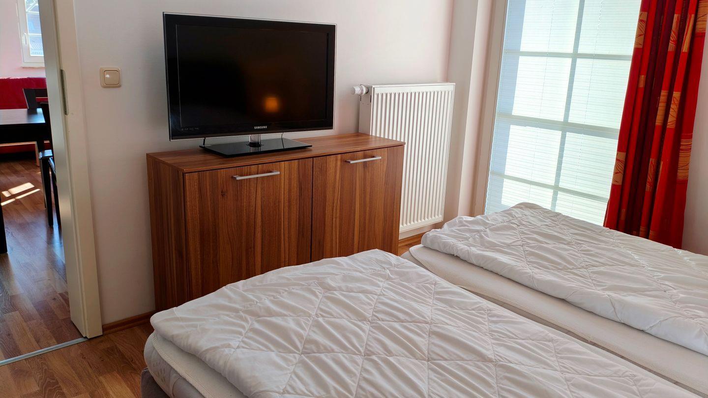 Die Wohnung ist allergikerfreundlich und als Nichtraucher-Unterkunft ausgewiesen. Sie verfügt über zwei separate Schlafzimmer mit Laminatfußboden, die Ihnen komfortable Schlafmöglichkeiten für bis zu drei Personen bieten. Das helle, freundliche Wohnzimmer ist mit einem Kaminofen für behagliche Abende ausgestattet. Eine stilvolle Sofalandschaft, zwei digitale Fernseher, ein CD-Player sowie ein Radio stehen zur Unterhaltung bereit.