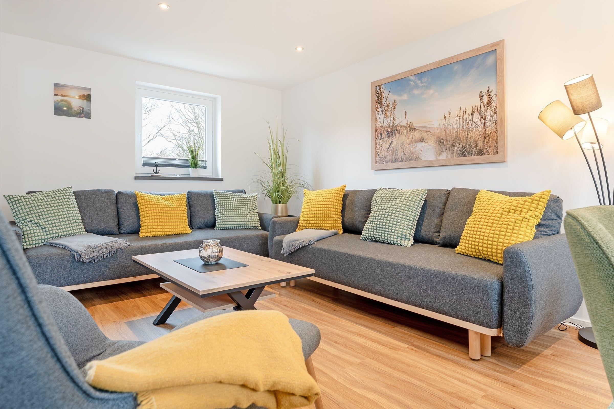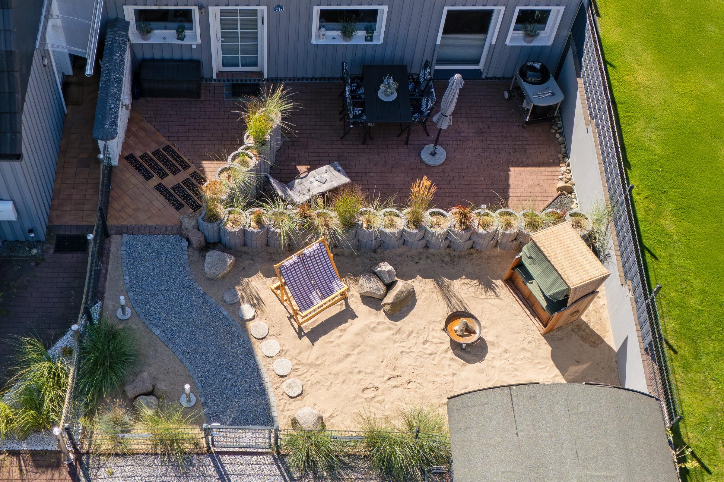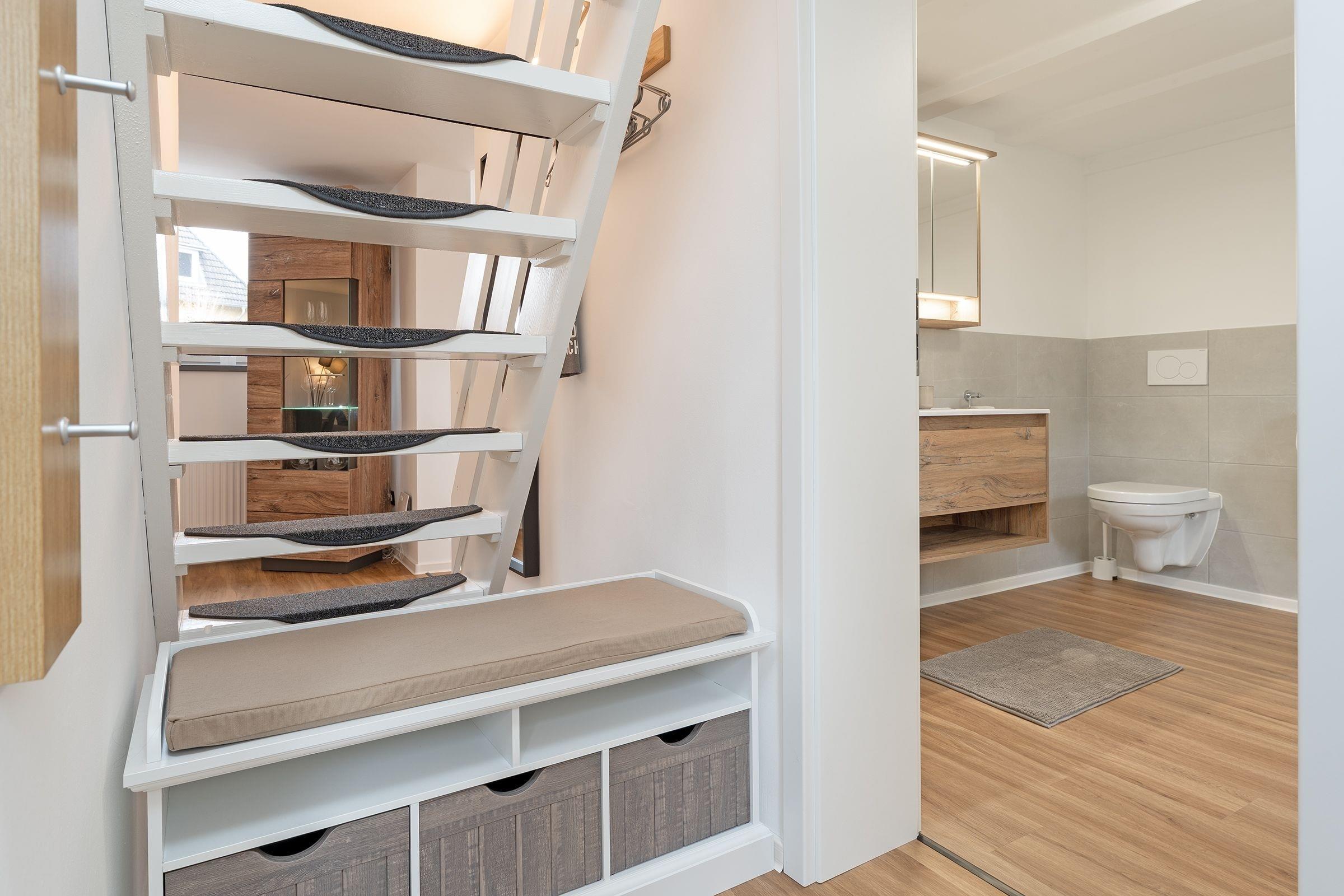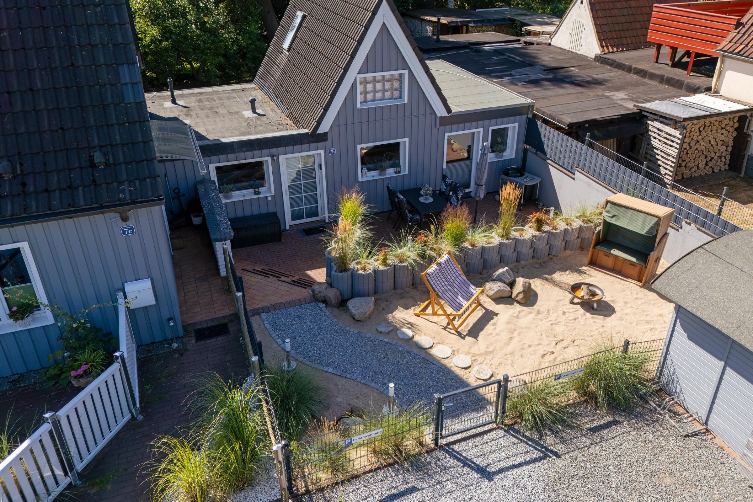 Willkommen in Ihrem Feriendomizil an der schönen Ostseeküste Schleswig-Holsteins! Dieses geschmackvoll eingerichtete Ferienhaus bietet Ihnen eine ideale Ausgangslage für erholsame Urlaubstage am Meer. Genießen Sie die frische Meeresbrise auf der Terrasse, die nach Nordwesten ausgerichtet ist und mit Gartenmöbeln und Grill ausgestattet ist – perfekt für entspannte Stunden an der frischen Luft. Der individuell gestaltete Wohnbereich empfängt Sie mit einer gemütlichen Atmosphäre. Kuschelige Sitzmöbel laden zum Entspannen ein. Das Sofa kann mit wenigen Handgriffen in einen Schlafplatz für zwei Personen (ca. 140x200cm) verwandelt werden. Die offene Küche grenzt direkt an den Wohnbereich und bietet Ihnen alles, was Sie für die Zubereitung köstlicher Mahlzeiten benötigen. Die moderne, zeitlose Ausstattung wird Sie begeistern. Das kuschelige Schlafzimmer erreichen Sie über eine kleine Treppe und sorgt mit seinen Dachschrägen für Behaglichkeit. Hier können Sie in einem komfortablen Doppelbett (2x 90x200cm) erholsame Nächte verbringen. Das großzügige Tageslichtbad im Erdgeschoss ist mit einer großen Dusche ausgestattet und bietet den Komfort, den man sich im Urlaub wünscht.