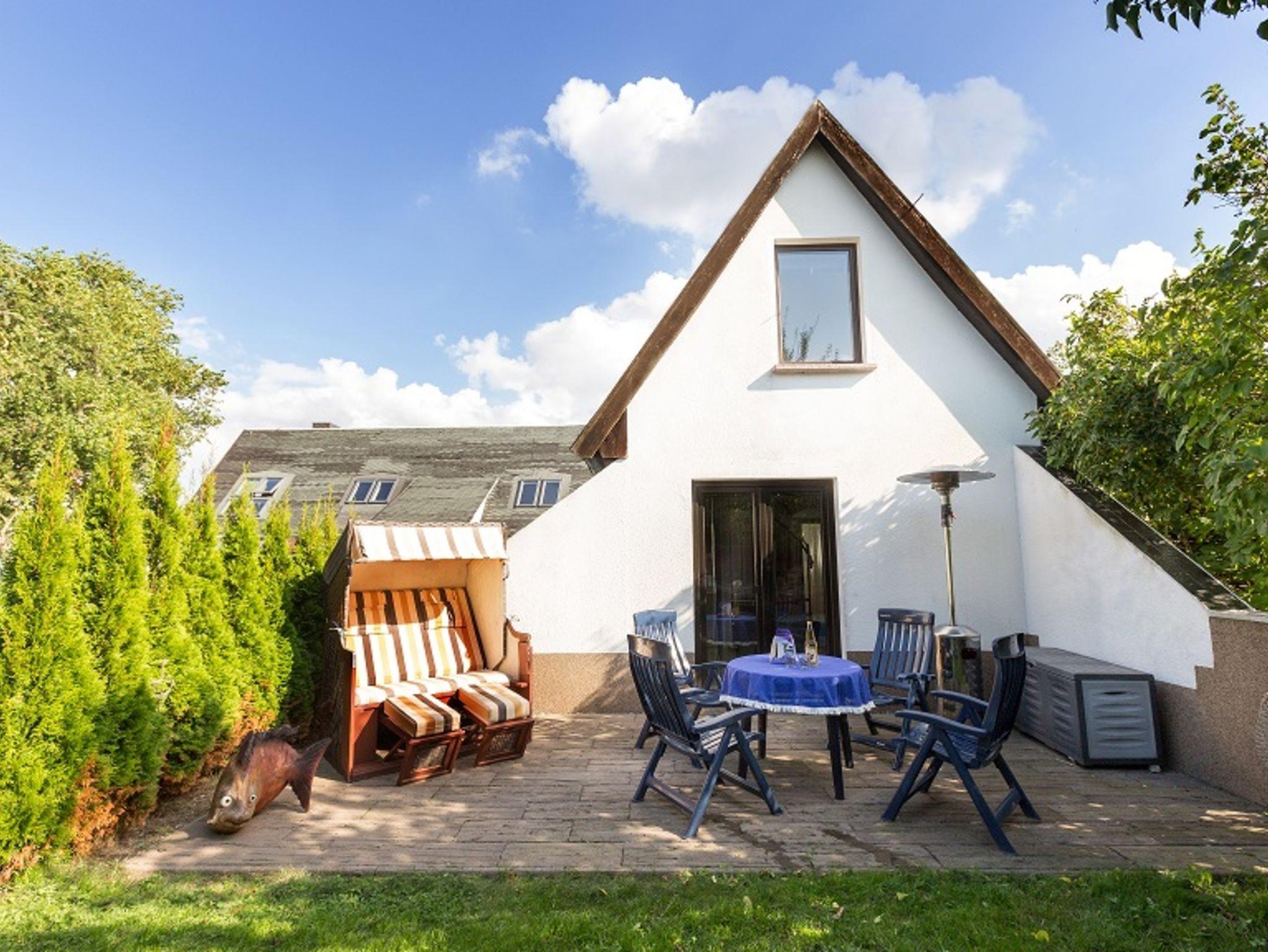 Maritim und modern möbliertes 2 Etagen-Ferienhaus (45 m²) mit 2 Sonnenterrassen und umgeben von alten Obstbäumen auf großem Gartengrundstück. Für 1 - 4 Pers. (1 Aufbettung 12,50 €/Nacht) - bei Unterbelegung (nur 1 Pers. 12,50 €/Abschlag pro Tag) Bitte beachten: schmale Wendeltreppe ins Obergeschoss!