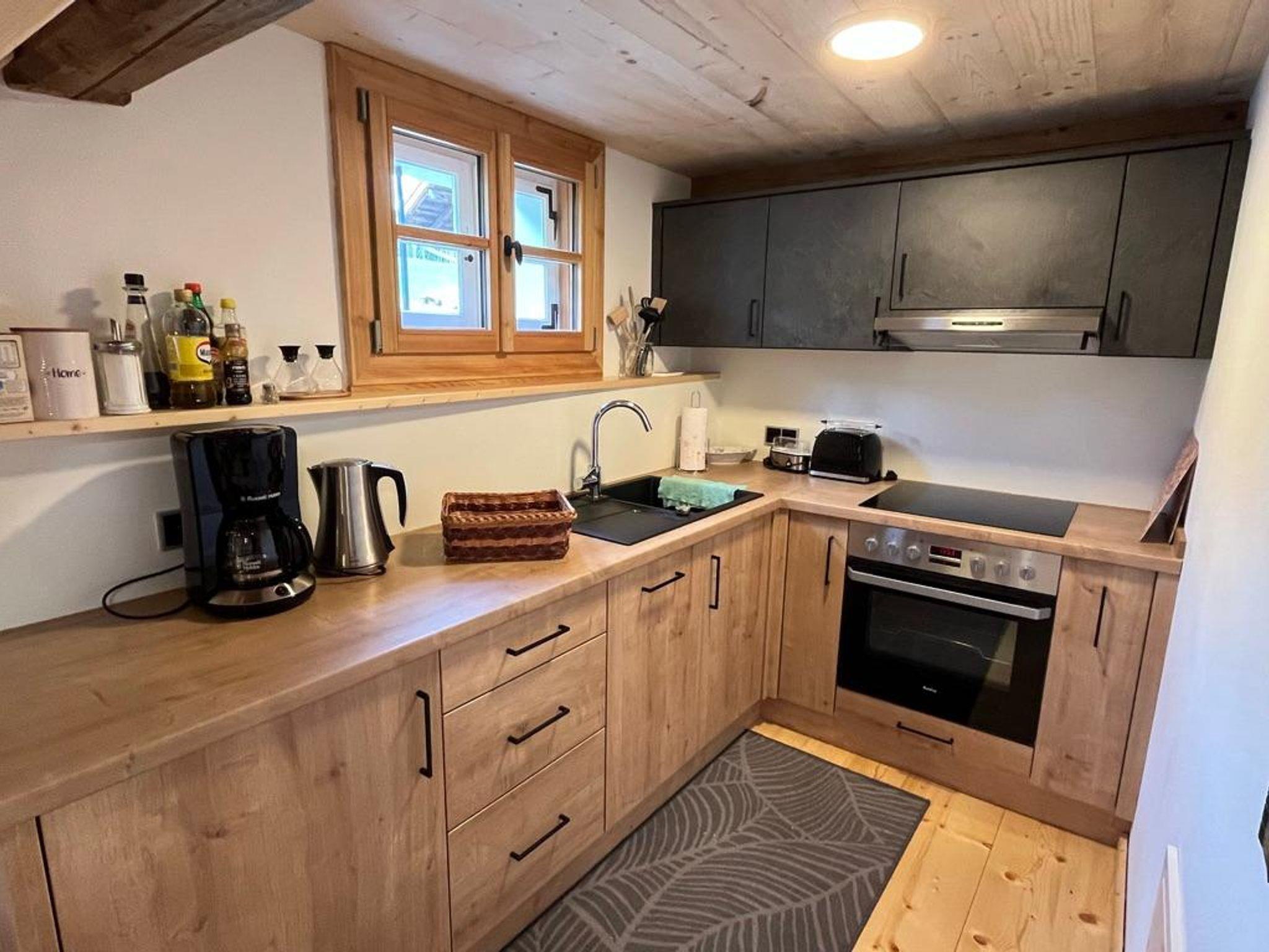 Unser exklusives Apartment erstreckt sich mit 35 qm über zwei Stockwerke. An der Rückwand des offenen Koch- und Essbereichs wurde der Blockbau originalgetreu ersetzt. Dadurch entsteht eine warme und gemütliche Atmosphäre. Neben dem modernen Bad befindet sich der Zugang zur eigenen Terrasse, welche auf dem „Steinkeller“ angelegt wurde. Von der großen Eckbank schweift der Blick durch die Terrassentür auf idyllische Wiesen und Felder. Im Dachgeschoss (Galerie) findet sich der gemütliche Schlafbereich mit Fernsehecke. Vor dem Einschlafen bietet sich hier der Einblick in das originale Gebälk mit Ambiente-Beleuchtung.