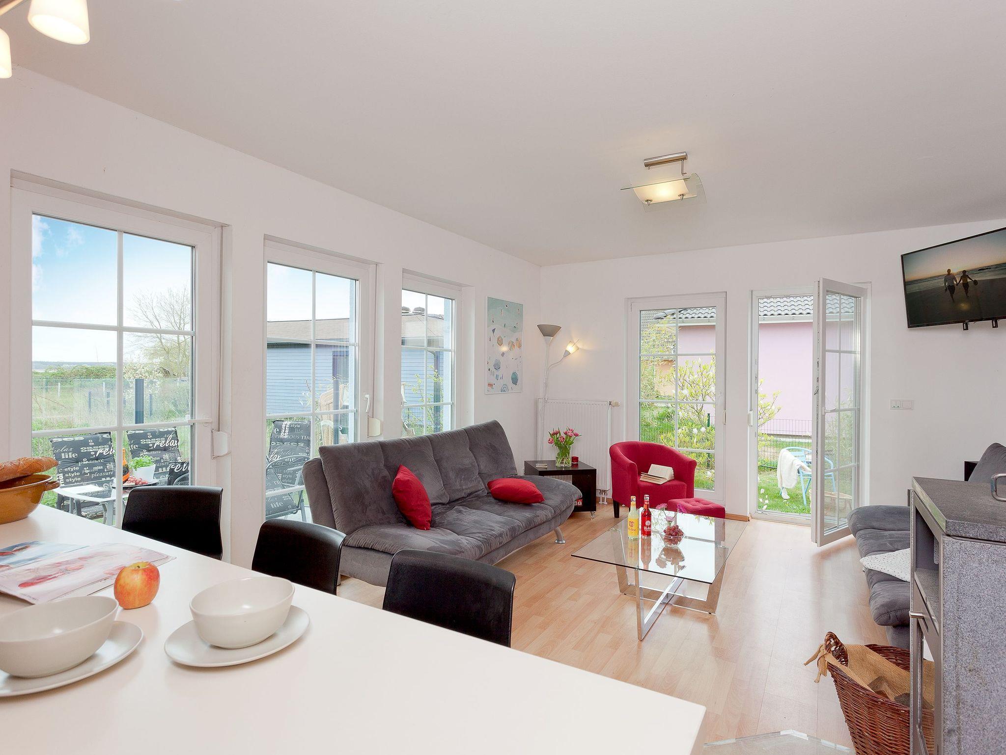 Das Ferienhaus mit nordisch blauer Fassade und 83 qm Wohnfläche ist im Jahr 2012 fertiggestellt . Es liegt in einem neu entstehenden und ständig wachsenden Ferienhausgebiet ca. 300 m vom Haupthafen und dem Seglerhafen entfernt im eingezäunten, eigenen Grundstück mit grosser Terrasse, die mit einem Windschutz umgeben ist und PKW-Stellplatz an einer Spielstraße.