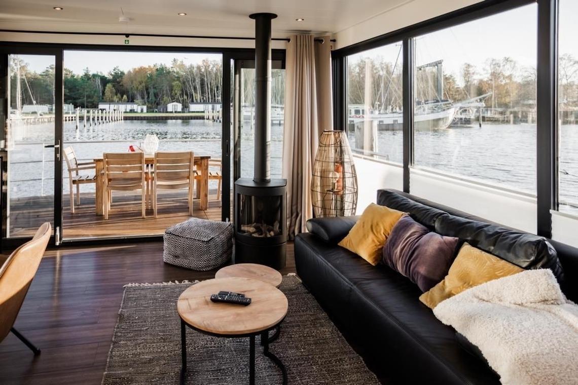 Das Hausboot "freiZeit" ist ein floating 44. Es besitzt 2 Schlafzimmer mit je einem Doppelbett. Das Badezimmer ist mit einer Dusche ausgestattet und einem separaten WC. Der Wohn- und Essbereich ist ein stilvoll eingerichteter Raum mit einer dreiseitigen Glasfront. Der Kamin rundet das einmalige Erlebnis ab.