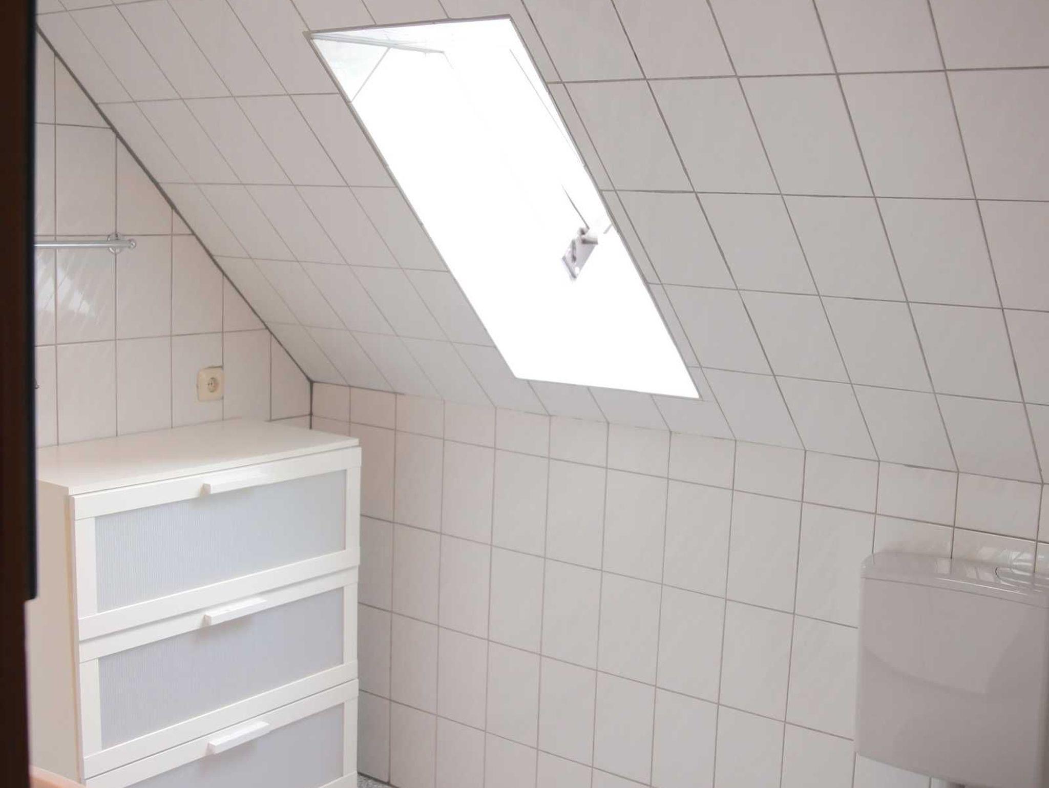 Das Badezimmer ist mit einer Dusche, WC und Waschbecken sowie ausreichend Ablagemöglichkeiten ausgestattet.