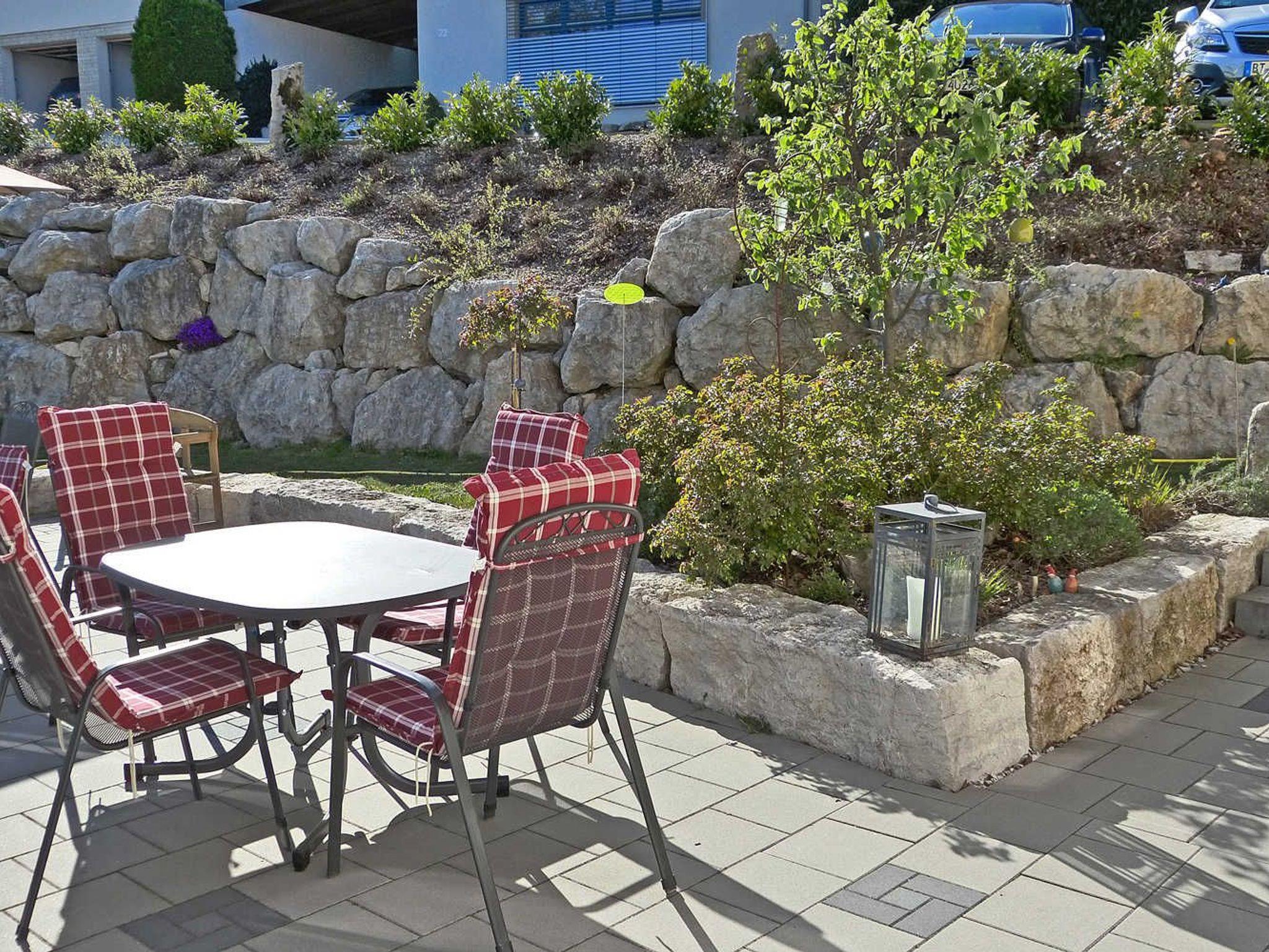 An der Südseite haben wir nun den Garten mit einer schönen Terrasse und einem Grillplatz mit Feuerstelle fertiggestellt. Ein Grillplatz unter Kirsch- und Wallnussbaum und die Terrasse mit direktem Zugang zum „Café Cosima“ laden zum entspannten Verweilen ein.
