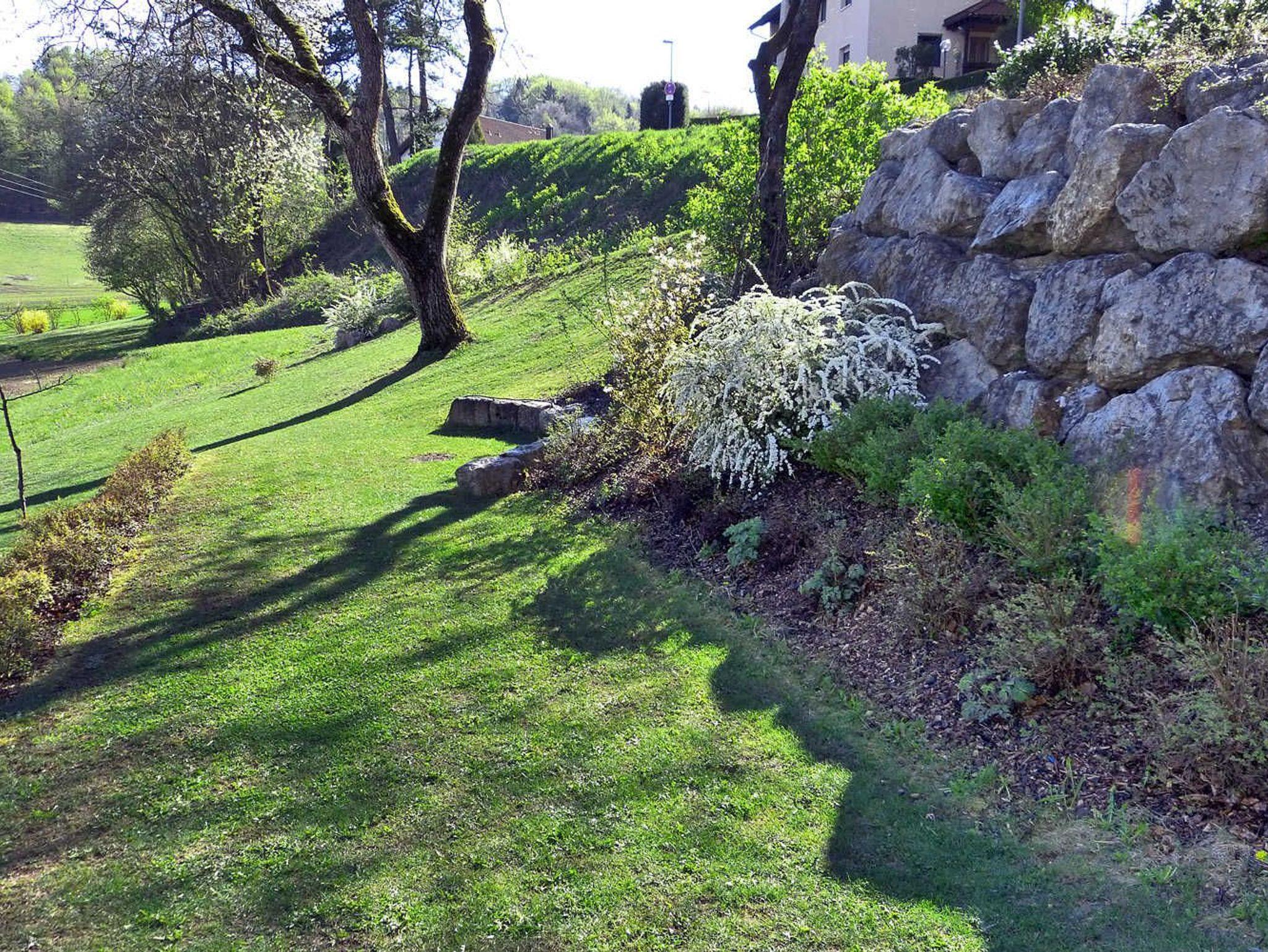 An der Südseite haben wir nun den Garten mit einer schönen Terrasse und einem Grillplatz mit Feuerstelle fertiggestellt. Ein Grillplatz unter Kirsch- und Wallnussbaum und die Terrasse mit direktem Zugang zum „Café Cosima“ laden zum entspannten Verweilen ein.