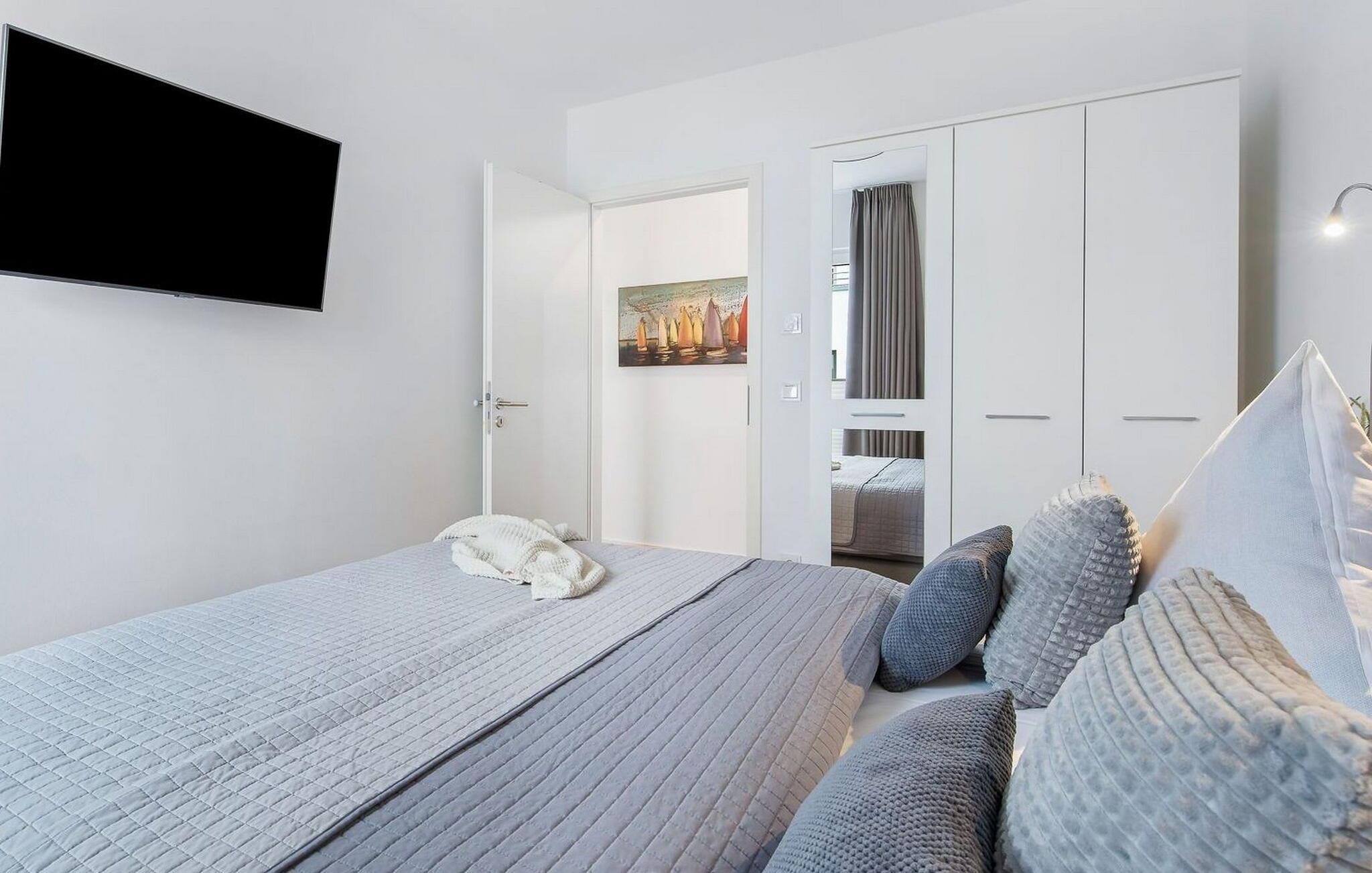 Två sovrum, vart och ett med TV, finns tillgängliga för ytterligare avkoppling. Ni kan välja mellan en bekväm dubbelsäng med resårmadrass eller två enkelsängar med resårmadrass, som också kan skjutas ihop vid behov. Du kommer att sova gott överallt.
