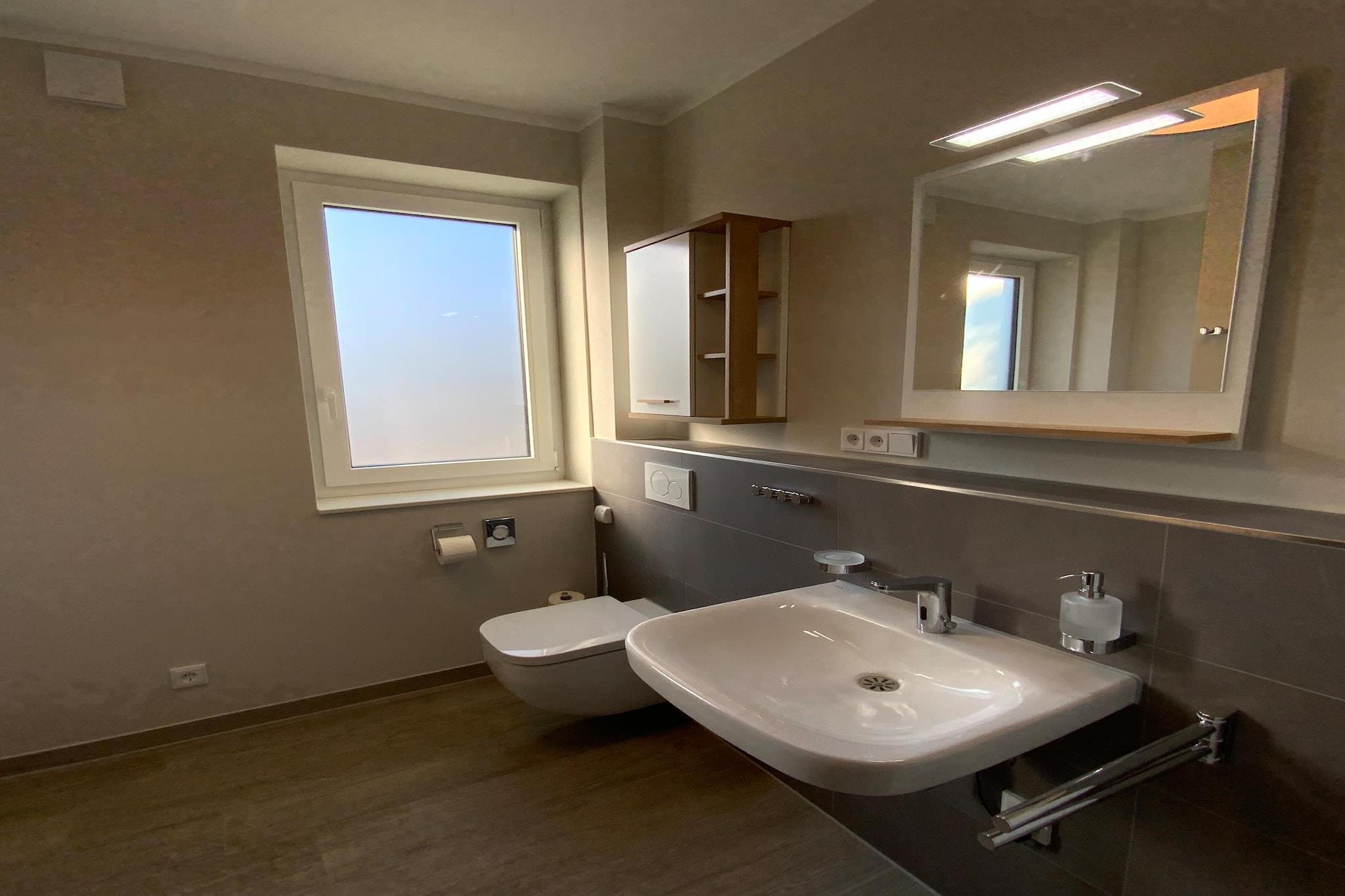 Du kommer att känna dig som hemma i vår vackra och moderna semesterlägenhet på 86 m² - prova! Den nya semesterlägenheten "Vasco da Gama" ligger på bottenvåningen i hyreshuset och har en bred entrédörr på ca 90 cm på grund av sin tillgänglighet. Rumsdörrarna har också denna generösa bredd. En parkeringsplats finns direkt framför huset. En smakfull, ljus, modern och vänlig atmosfär väntar dig. Du kommer att känna kärleken till detaljerna från första sekund och vistelsen i denna fantastiska semesterlägenhet kommer att få dig att glömma vardagen. Lägenheten har ett rymligt vardagsrum med bäddsoffa och en stor 55" Smart TV samt en soundbar. Det skräddarsydda öppna köket, som är utrustat med porslin och hushållsmaskiner, ligger precis intill vardagsrummet. Det finns inget kvar att önska för entusiastiska kockar. Lägenheten har en rymlig terrass där du kan njuta av din frukost eller avsluta dagen. Om vädret inte passar dig kan du också njuta av kvällarna framför den mysiga och romantiska öppna spisen i vardagsrummet. Alla sängar har högkvalitativa madrasser, som har en mjuk och en hårdare sida. Det stora sovrummet har en dubbelsäng och en 32" Smart TV. Det andra sovrummet har också en 32" Smart TV och 2 enkelsängar. Badrummet har en duschkabin. Semesterlägenheten "Vasco da Gama" har också en Bangkirai - träterrass där du kan njuta av din frukost eller avsluta dag .Höjdpunkter ingår:Alla användningsbaserade energikostnaderWLAN parkeringsplats HissPlatsen Petersdorf ligger väster om den vackra ön Fehmarn. Stranden i Bojendorf är ca 3 km. De närmaste större butikerna ligger ca 400 m bort med di