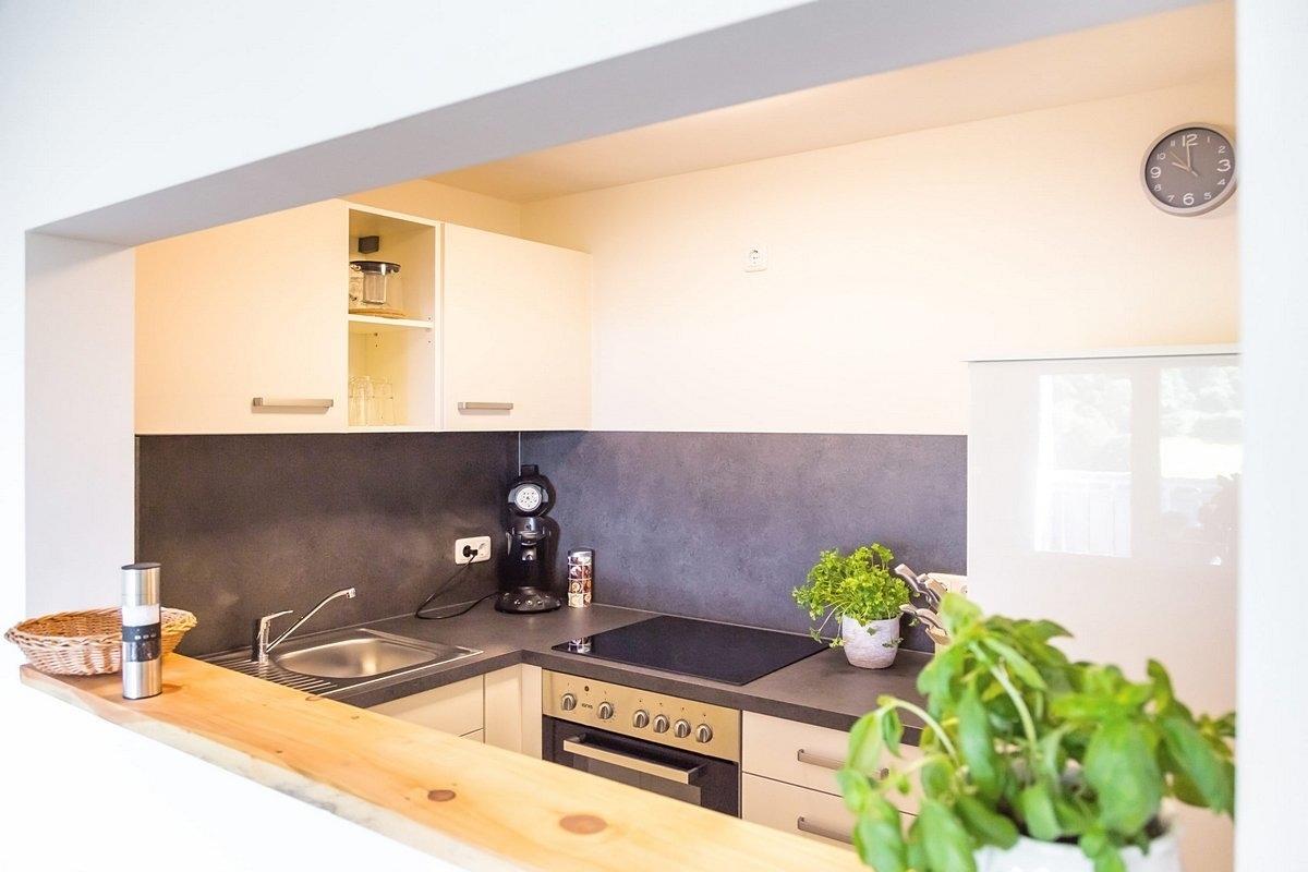 Moderne Wohnkultur mit traditionellem Alpencharme machen diese Ferienwohnung für zwei Personen (weitere Personen auf Anfrage) zur perfekten Heimat auf Zeit. Für Sie und Ihre Lieben legen wir höchsten Wert auf eine komfortable Ausstattung. Die wildgrünen Zirbenholzelemente, das hochwertige Boxspringbett, die moderne Küche und natürliche, alpenländische Dekoration sorgen für die einzigartige Wohlfühlatmosphäre die unsere Gäste so schätzen.