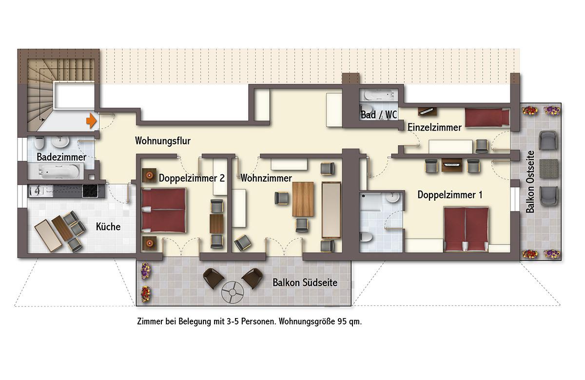 Die Ferienwohnung Miriam mit 95 m² verfügt über: