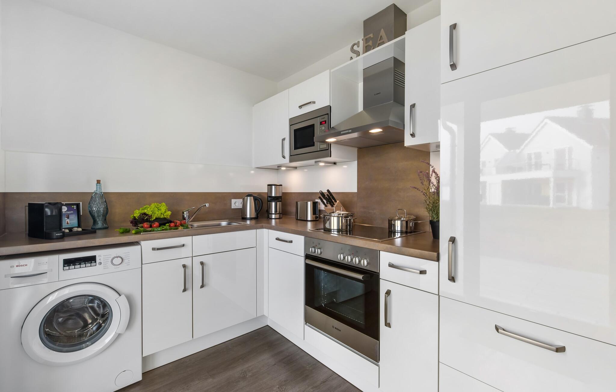 På semestern finns det tid för kreativ matlagning - det välutrustade köket lämnar inget övrigt att önska. Här kan läckra semestermåltider trollas fram.