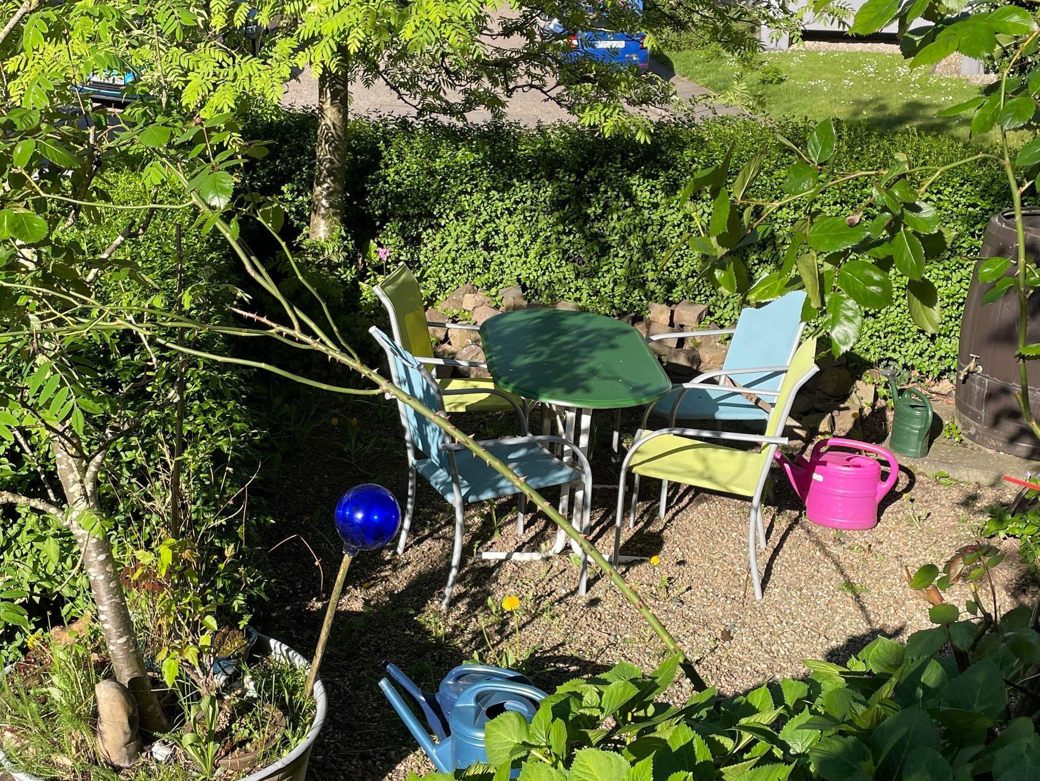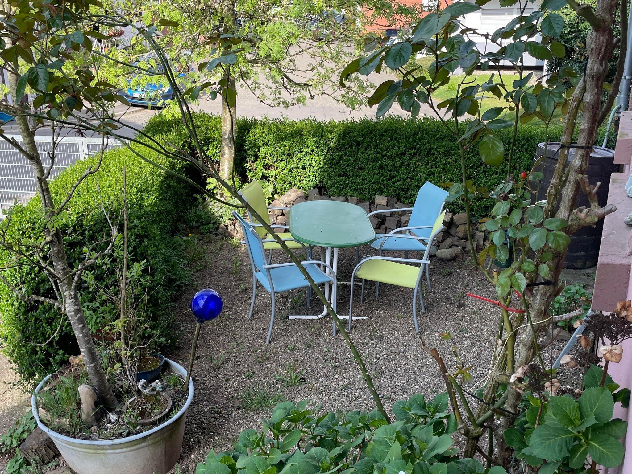Weitere Sitz- und Spielmöglichkeiten sind im Hof. Das Hoftor schützt eure Kinder vor dem Straßenverkehr.