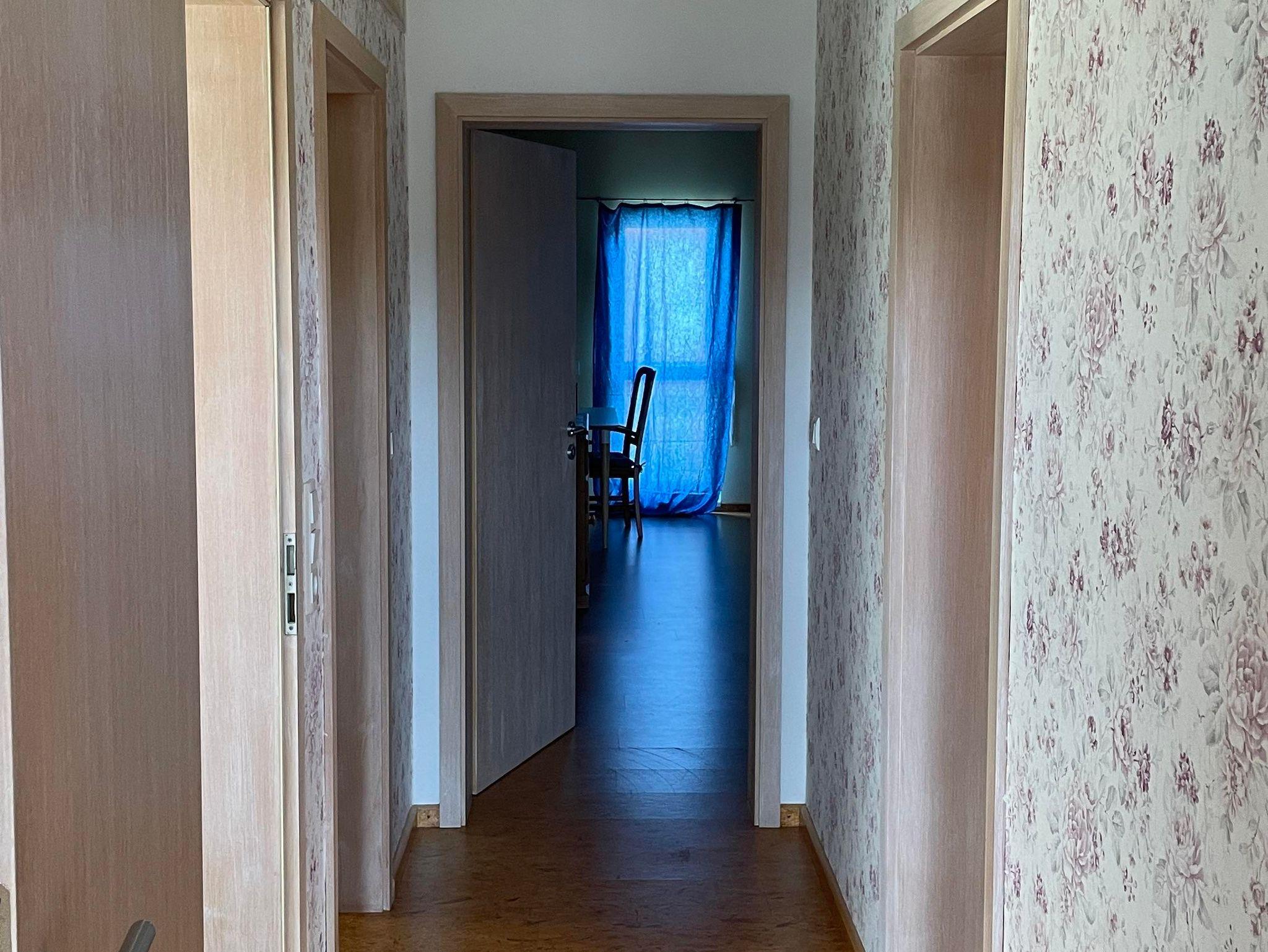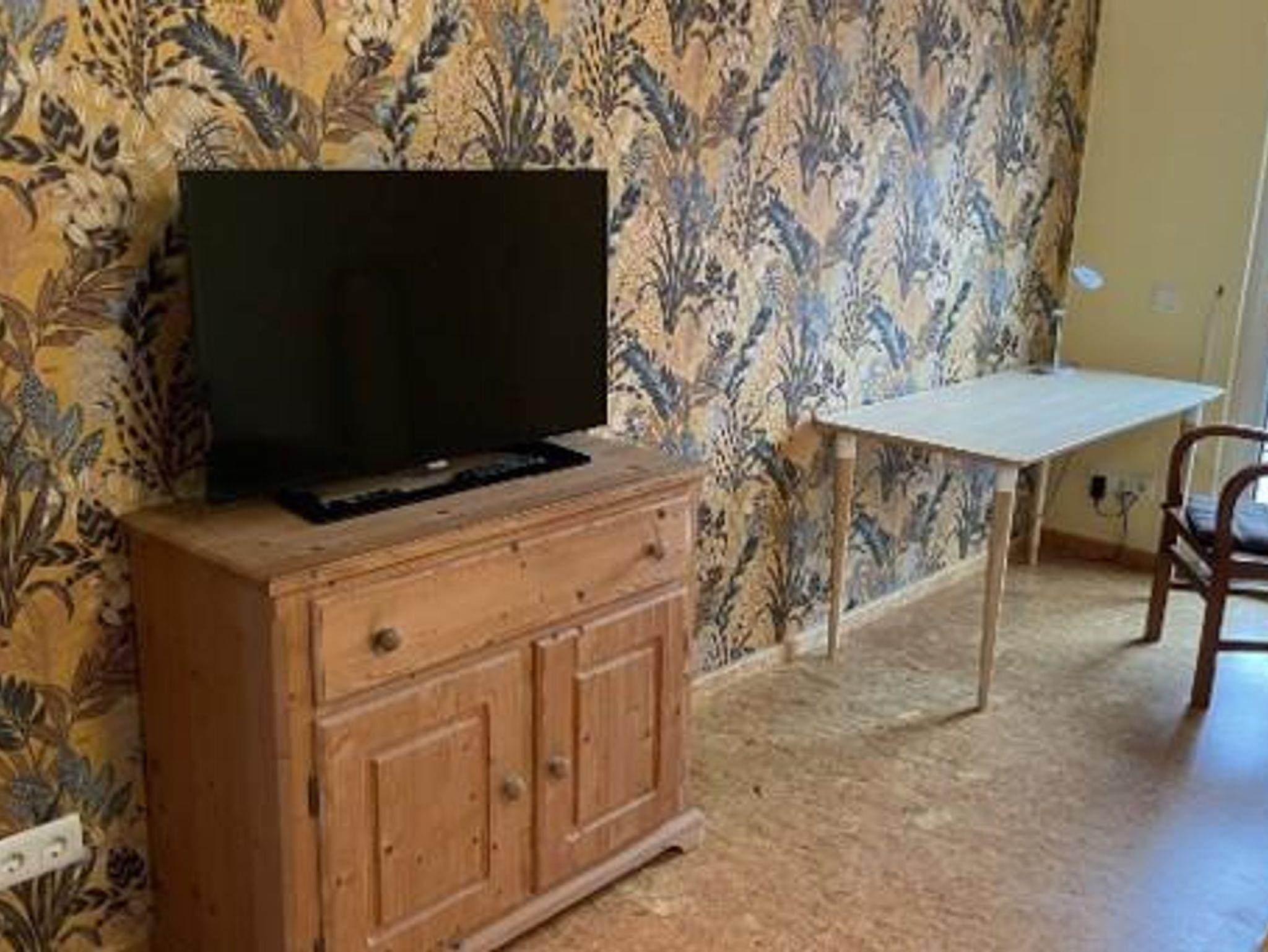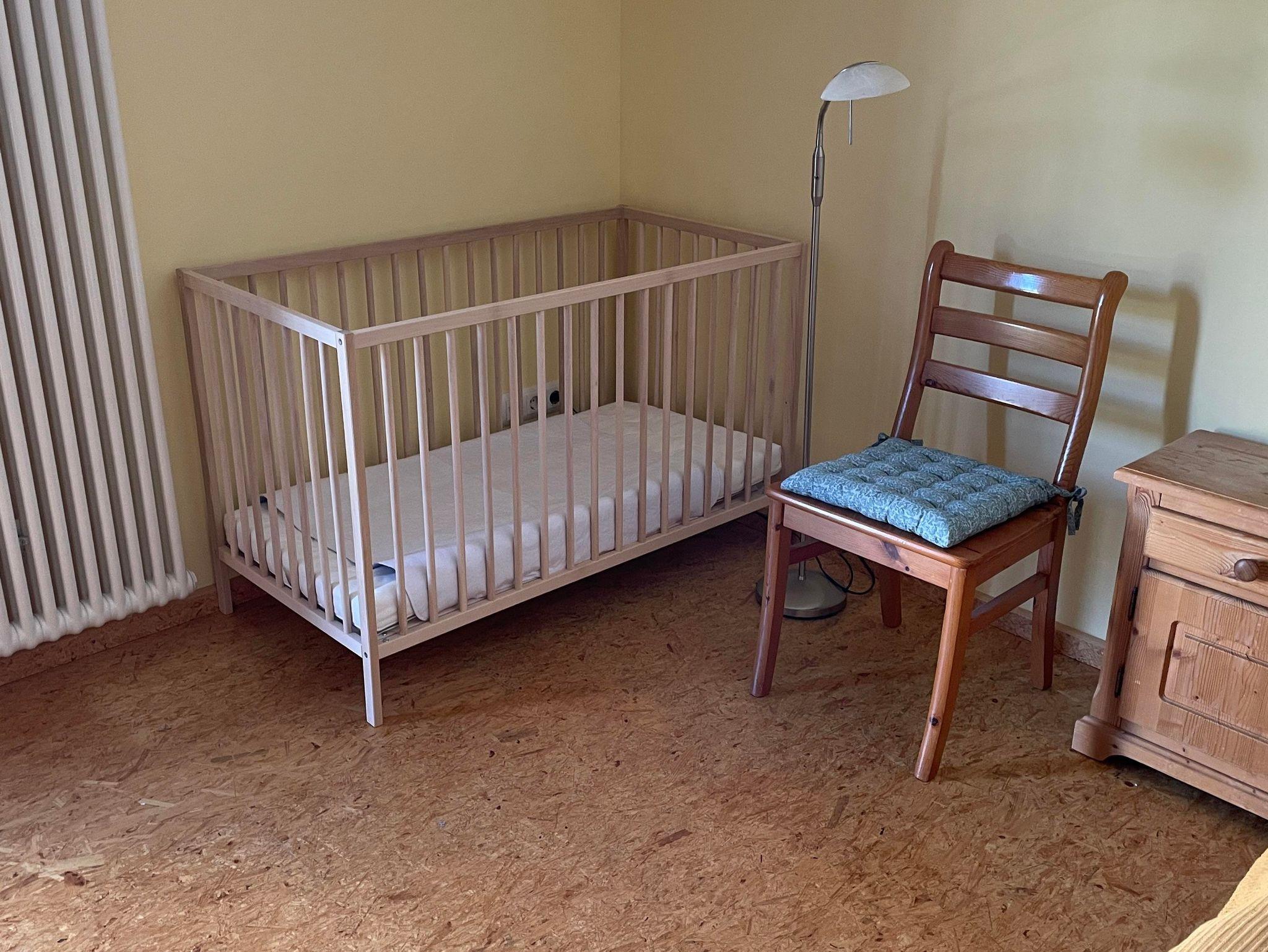 Das sehr große Schlafzimmer hat zwei Betten (je 1x2m), ebenfalls einen Fernseher. Ein Gitterbett für Babys ist vorhanden.