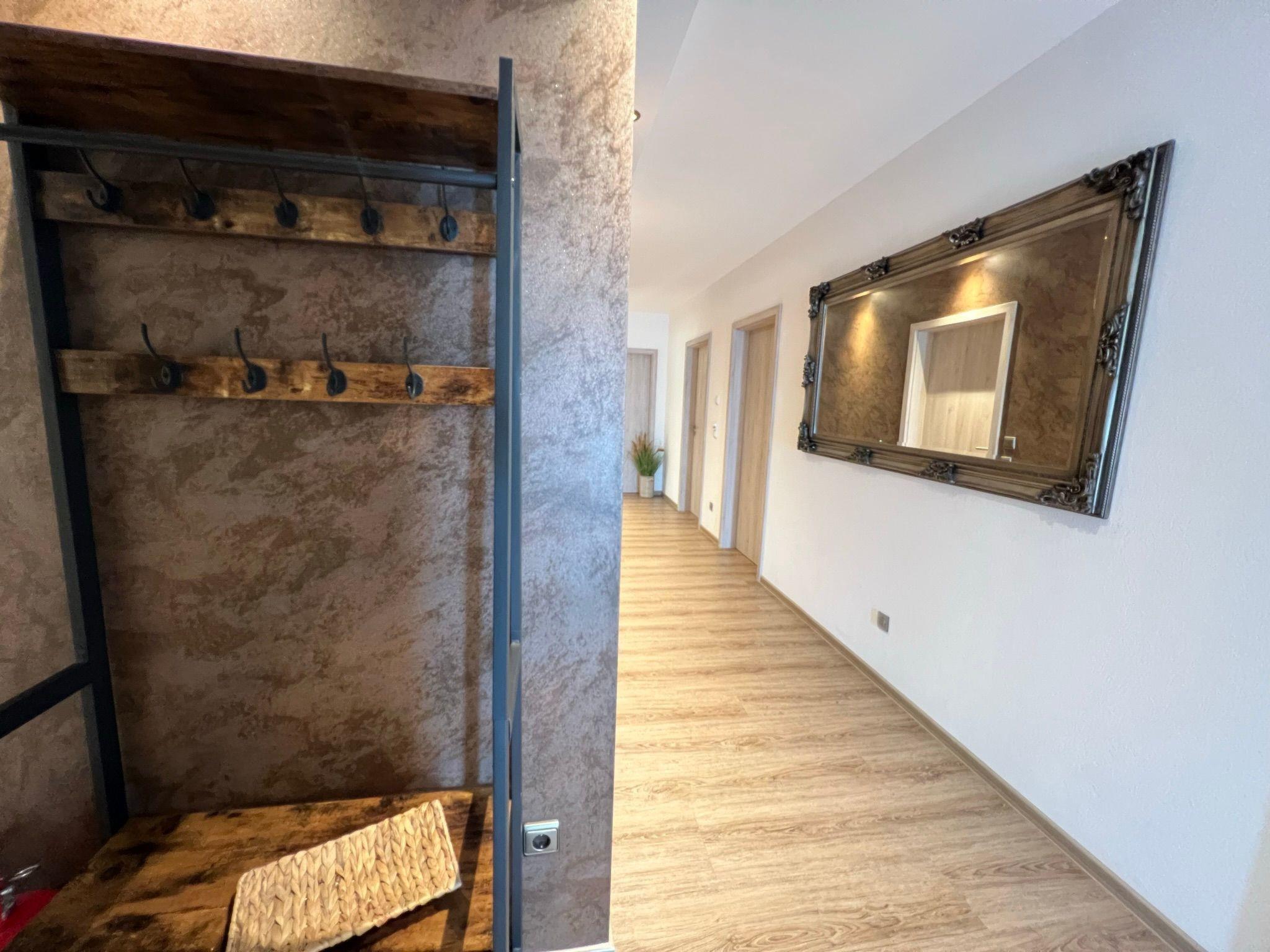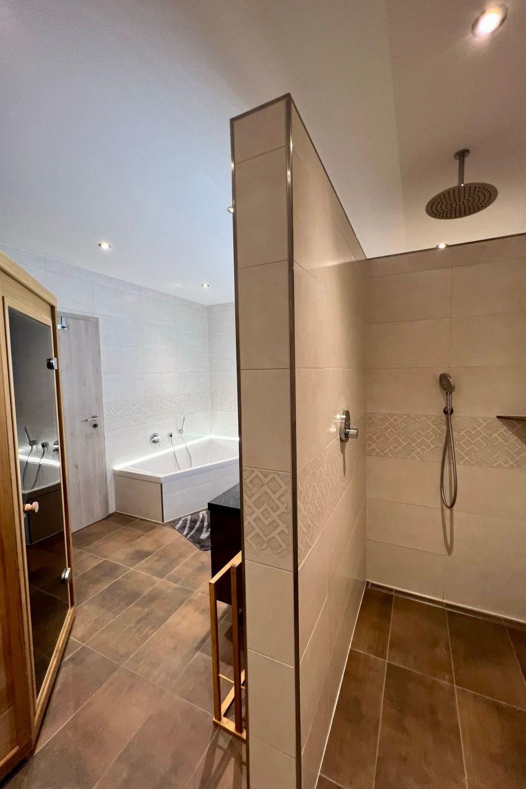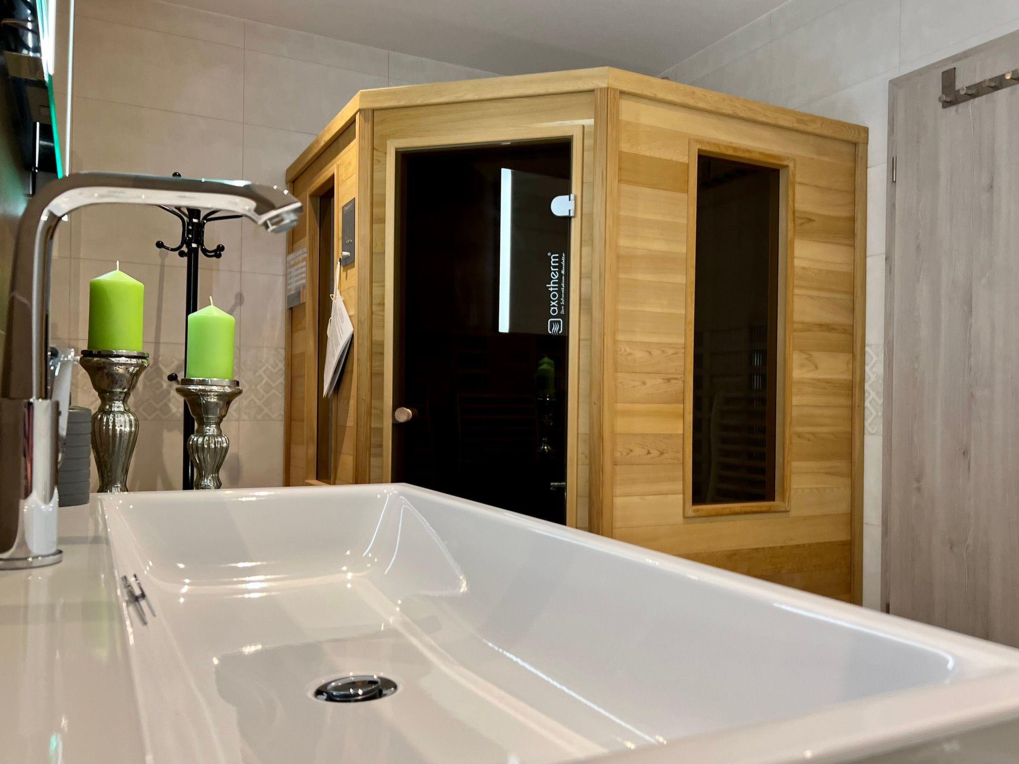 The holiday suite extends over approx. 120 square metres on the ground floor and has three inviting bedrooms, a living room with an open-plan kitchen and dining area as well as a hallway and a guest WC. The wellness bathroom promises special relaxation with its infrared deep-heat sauna, which provides additional well-being with a brine nebuliser, and a large bathtub for two people. A cot can also be accommodated on request. The facilities leave nothing to be desired and guarantee a comfortable stay.