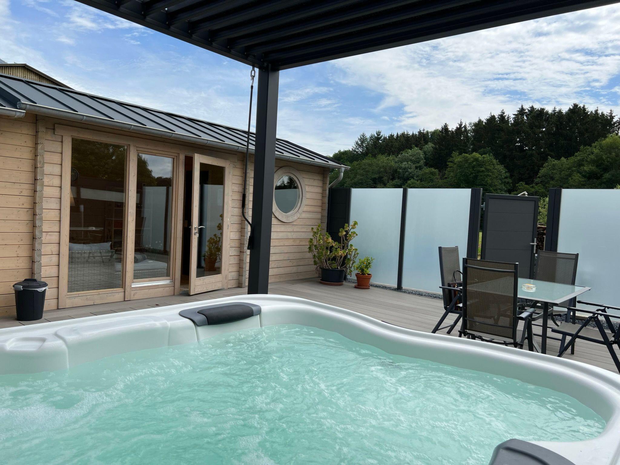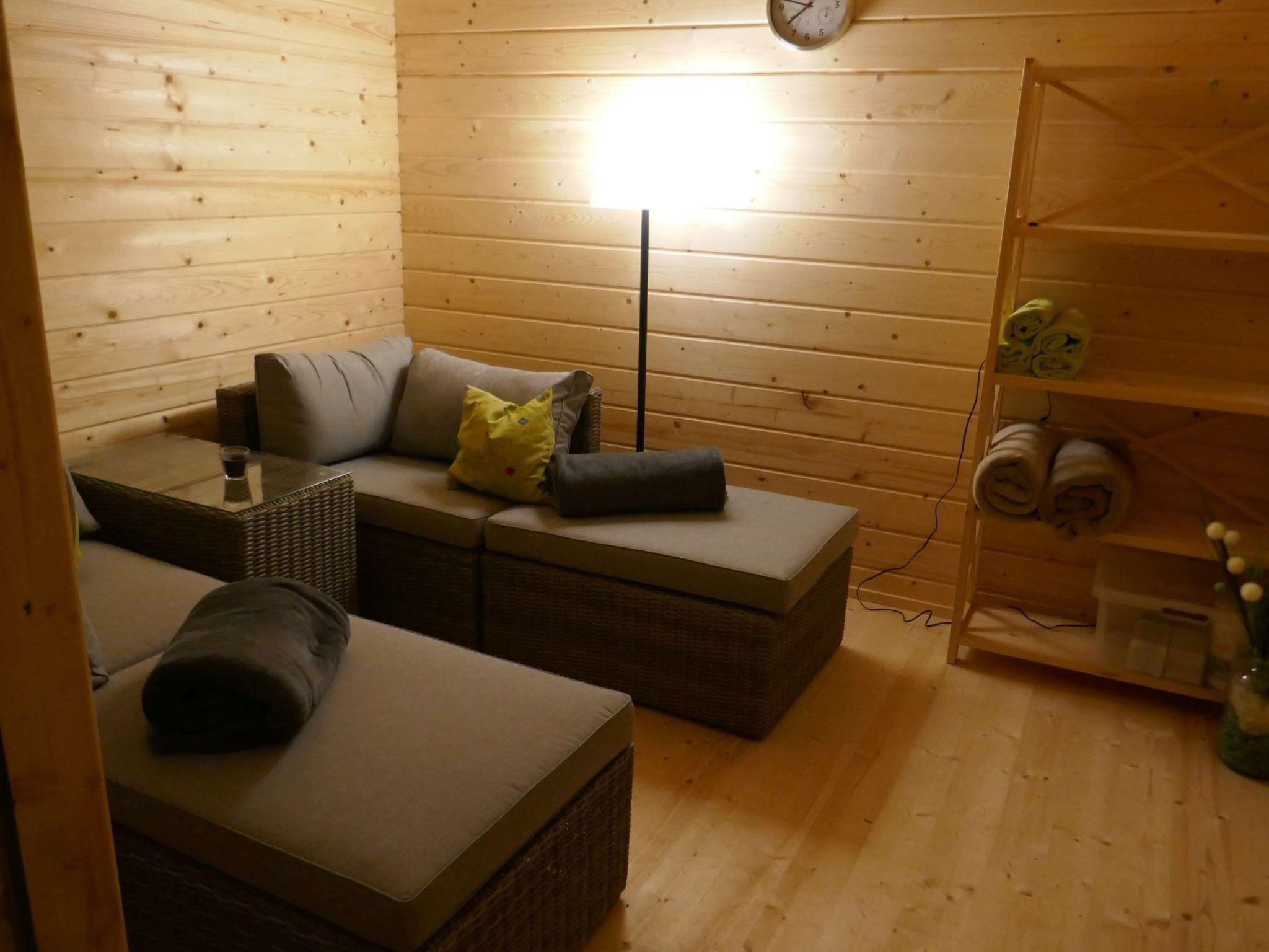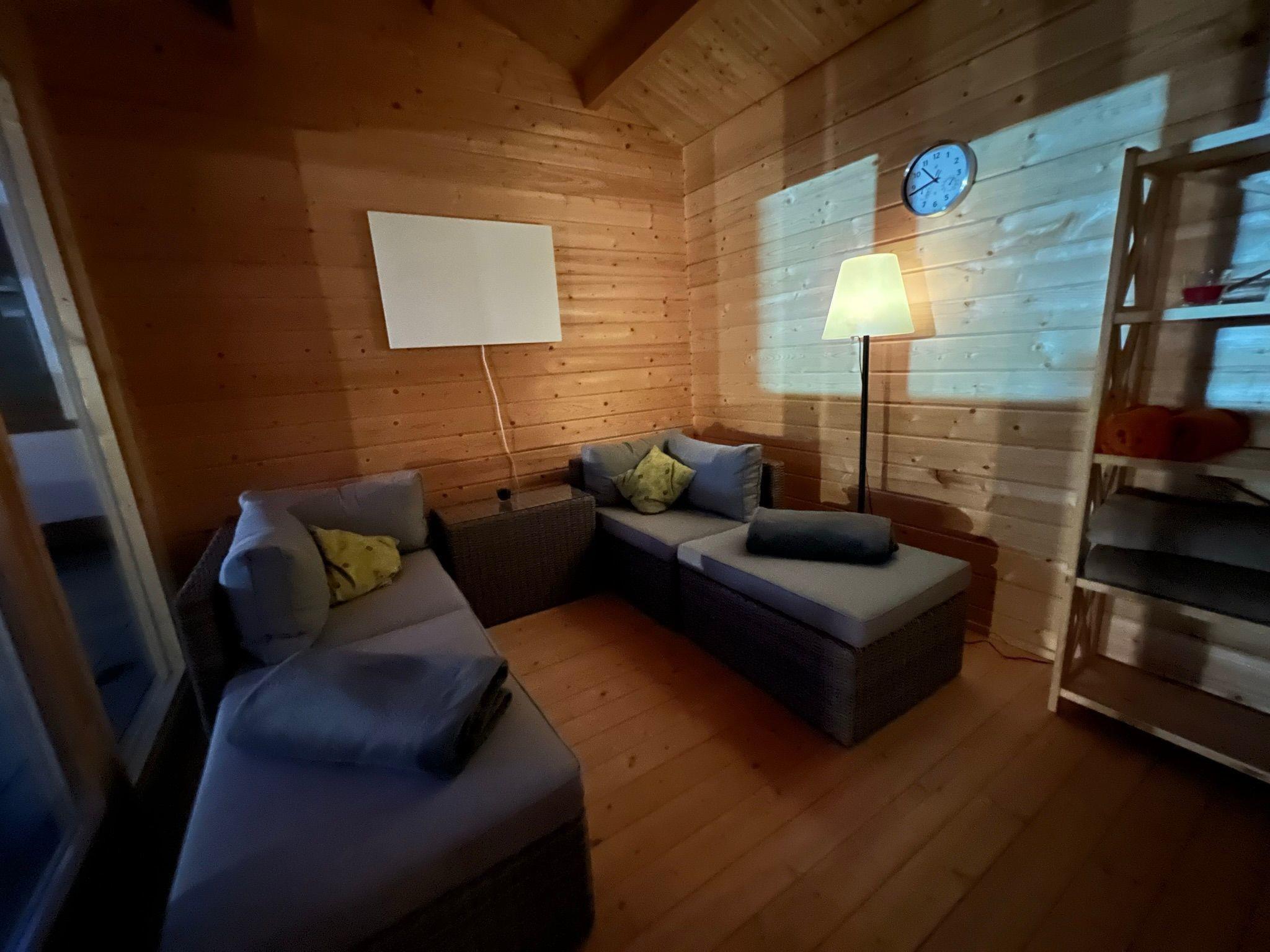 Outside, a generously designed wellness area awaits you, inviting you to relax. This area includes a sauna house, a jacuzzi and a terrace and is open daily from 9 am to 10 pm. Garden furniture, a barbecue area with a large barbecue as well as a well-tended lawn and a wide meadow offer additional space for activities or relaxing hours outdoors.