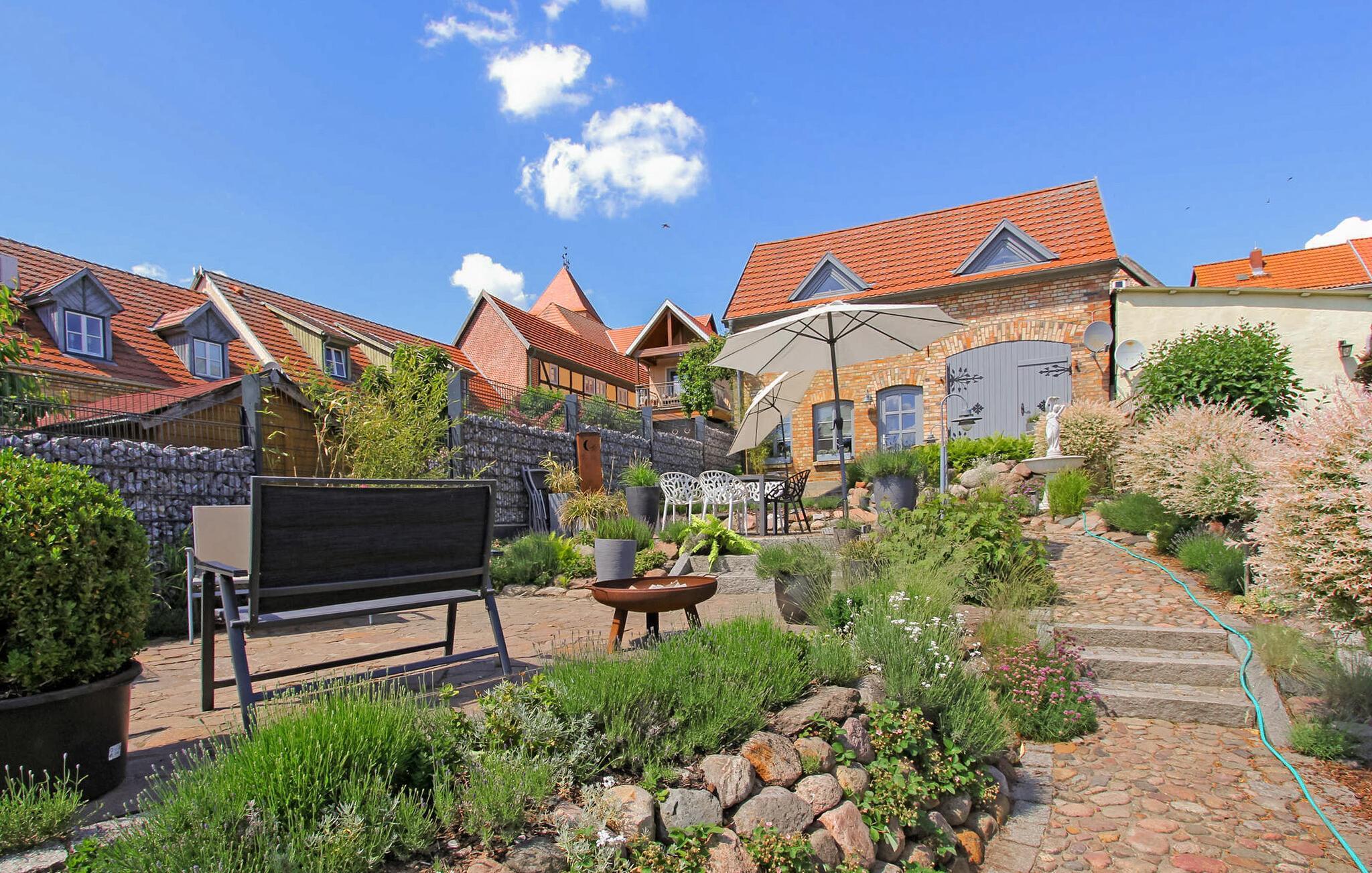 Detta bekväma semesterhus ligger på en separat, terrasserad fritidstomt direkt vid stranden av floden Elde. Elde, en vattenväg mellan sjön Plau och Schwerins vatten, flyter genom staden Plau, med en vacker strandpromenad som löper längs dess stränder. Semesterhuset är bekvämt och stilfullt inrett. Det har en öppen planlösning (inga dörrar). På bottenvåningen finns ett vardagsrum (stoppad sittgrupp med 4 fåtöljer, stor LCD-TV, musikanläggning, WLAN) och en öppen passage till ett välutrustat kök med matplats, elspis, diskmaskin och diverse köksmaskiner. På övervåningen finns en öppen planlösning med en dubbelsäng på ett galleri, en bäddsoffa för två personer och ett omklädningsrum samt ett badrum med dusch/wc. Huset kan värmas upp centralt. Barnsäng tillgänglig. På grund av flera trappsteg är semesterhuset inte lämpligt för gäster med gångsvårigheter. Utanför finns en damm med guldfisk, 2 möblerade terrasser, grillplats, WLAN och parkeringsplats. I totalpriset ingår slutstädning, sänglinne, vatten- och energiförbrukning. Betalas på plats: Turistskatt.