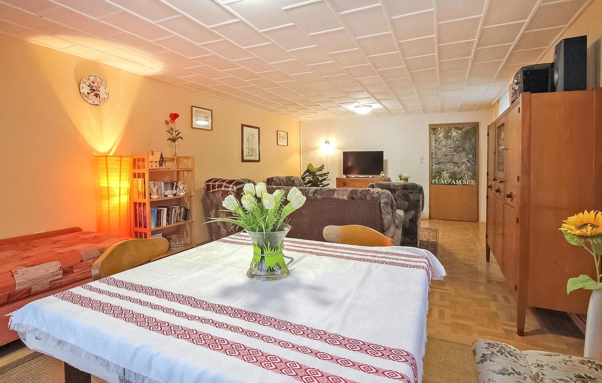 Semesterlägenheten, som är en separat utbyggnad av huset, ligger på ägarens 1800 kvadratmeter stora, lugna bostadsfastighet i centrala Plau, direkt vid vattenvägen Müritz-Elde. Shoppingmöjligheter, caféer och restauranger inom en radie av bara 100 meter.