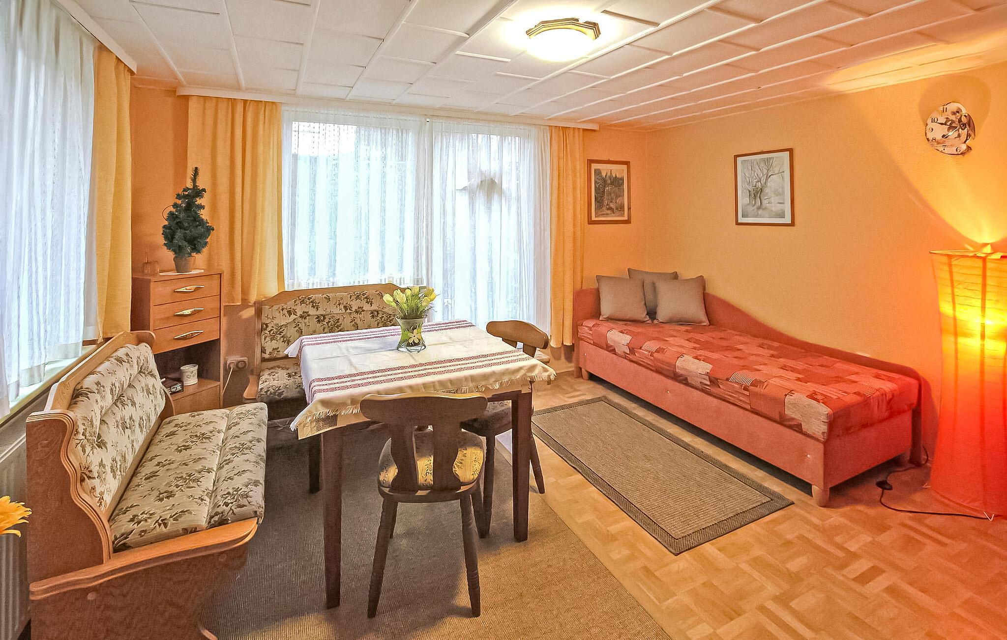 Semesterlägenheten, delvis renoverad år 2017, är utrustad med: Vardagsrum (stoppade möbler med sovfunktion, bäddsoffa, platt-TV, radio/CD, matbord, sovrum (dubbelsäng, väggsäng), kök (enkel elspis, kylskåp, miniugn, diverse köksutrustning), badrum med dusch/WC (golvvärme, totalrenoverad 2017), barnsäng och barnstol, elvärme. Till ert förfogande: möblerad terrass, solstolar, paviljong, liten lekplats, cykelförråd och parkeringsplats, sänglinne, slutstädning, vatten och energi ingår i totalpriset. Vänligen ta med egna handdukar. Betalas på plats: Turistskatt. Husdjur: Hundar är tillåtna i denna fastighet.