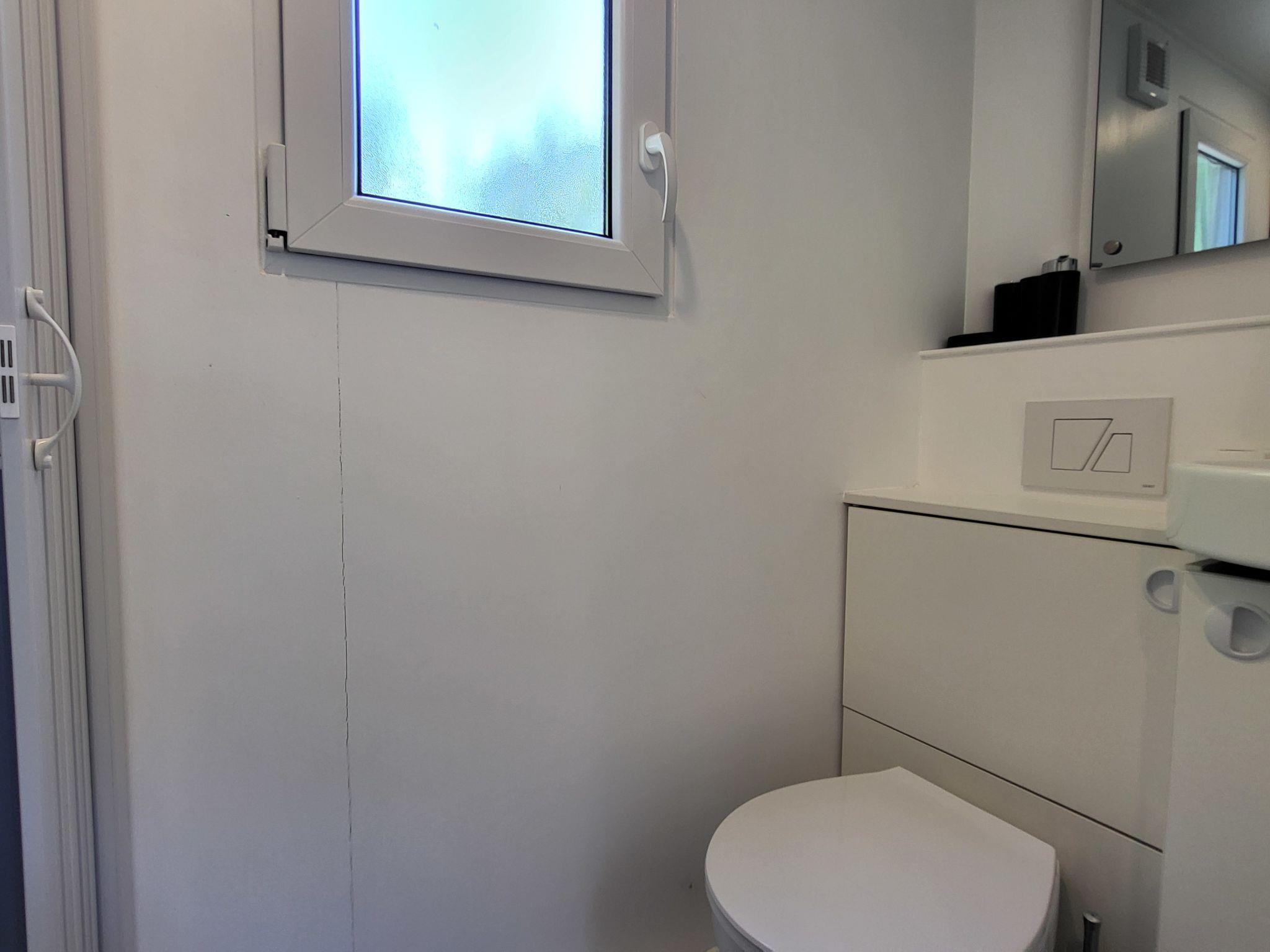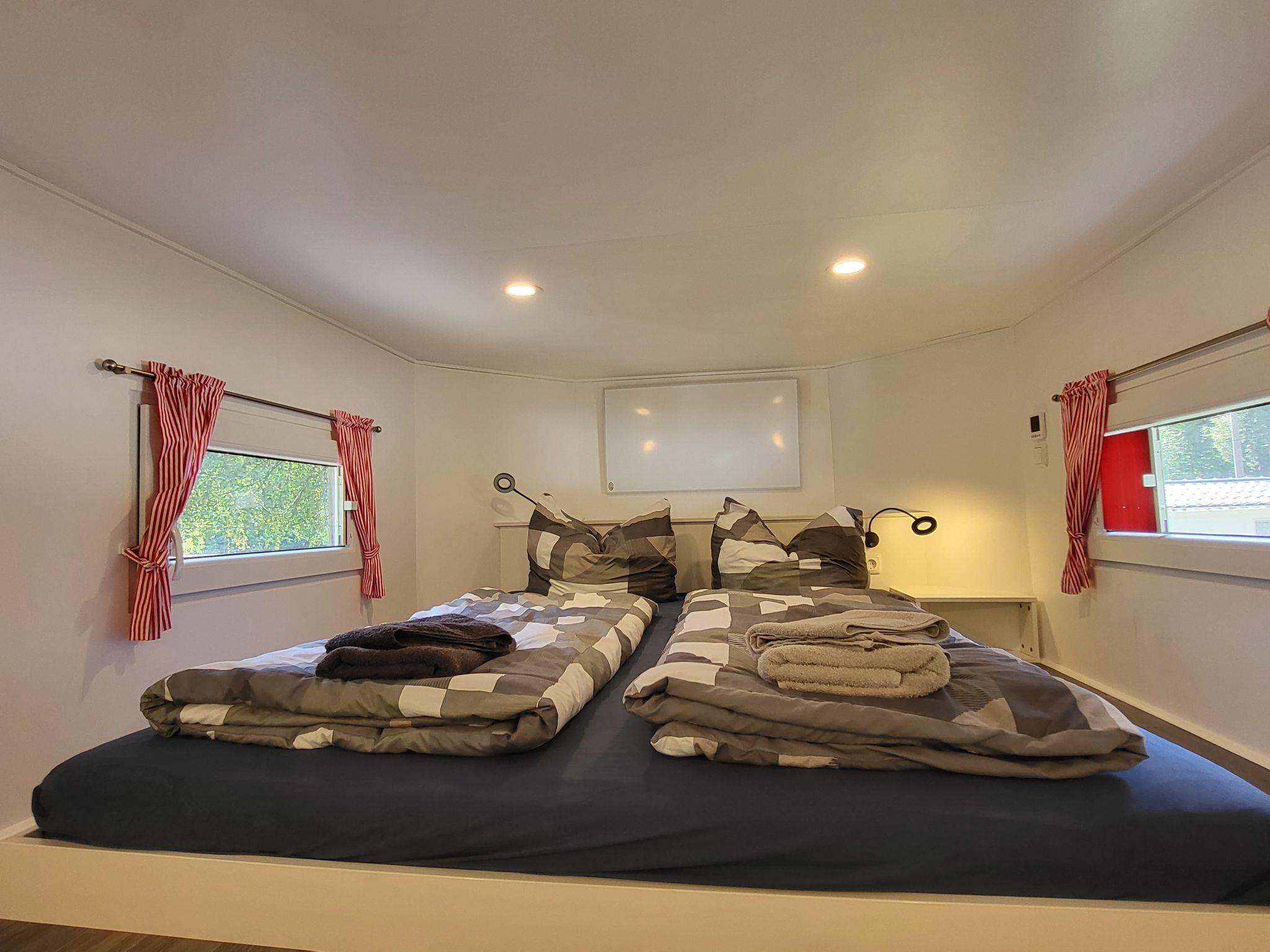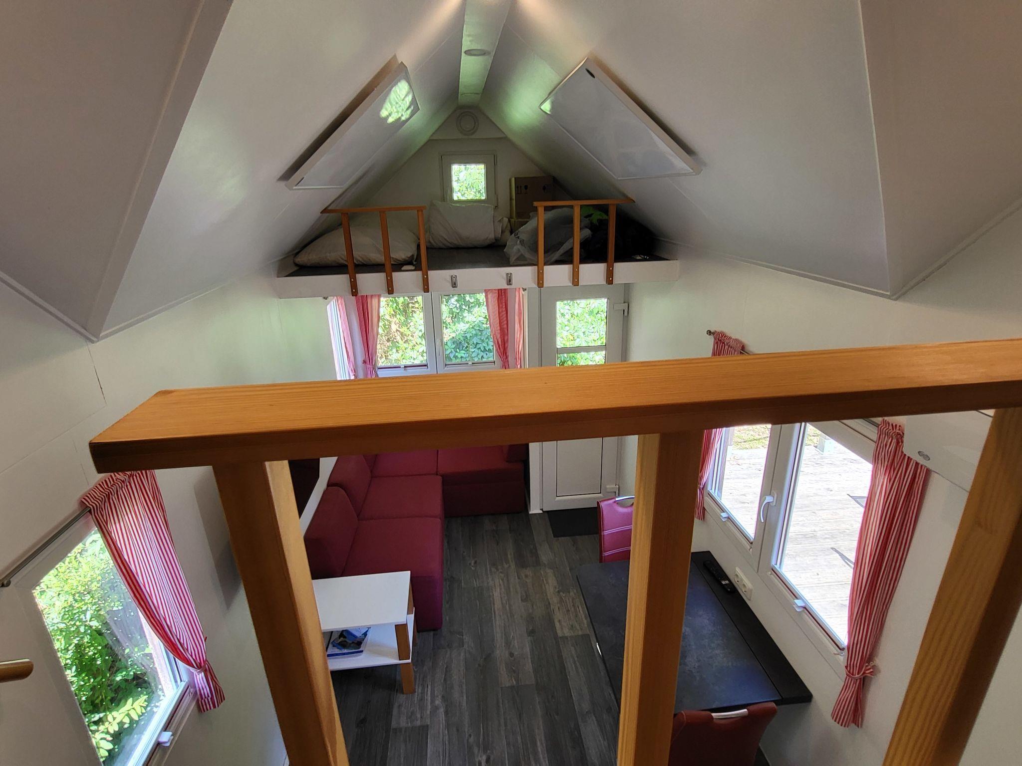 "Tinyhaus 41 Lütt Huus", 1-room mobile home. Object suitable for 2 adults + 1 child. Modern and tasteful furnishings: open living/sleeping room with 1 double bed (180 cm, length 200 cm). Open kitchen (oven, 2 ceramic glass hob hotplates, kettle). Shower/WC. Electric heating. Terrace 15 m2. Terrace furniture. Facilities: hair dryer. Extra. Parking (1 car).