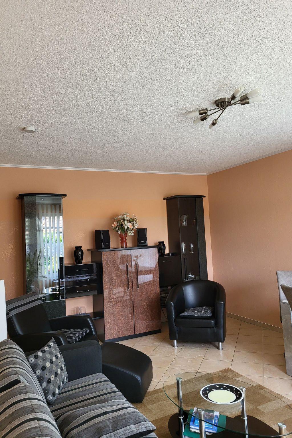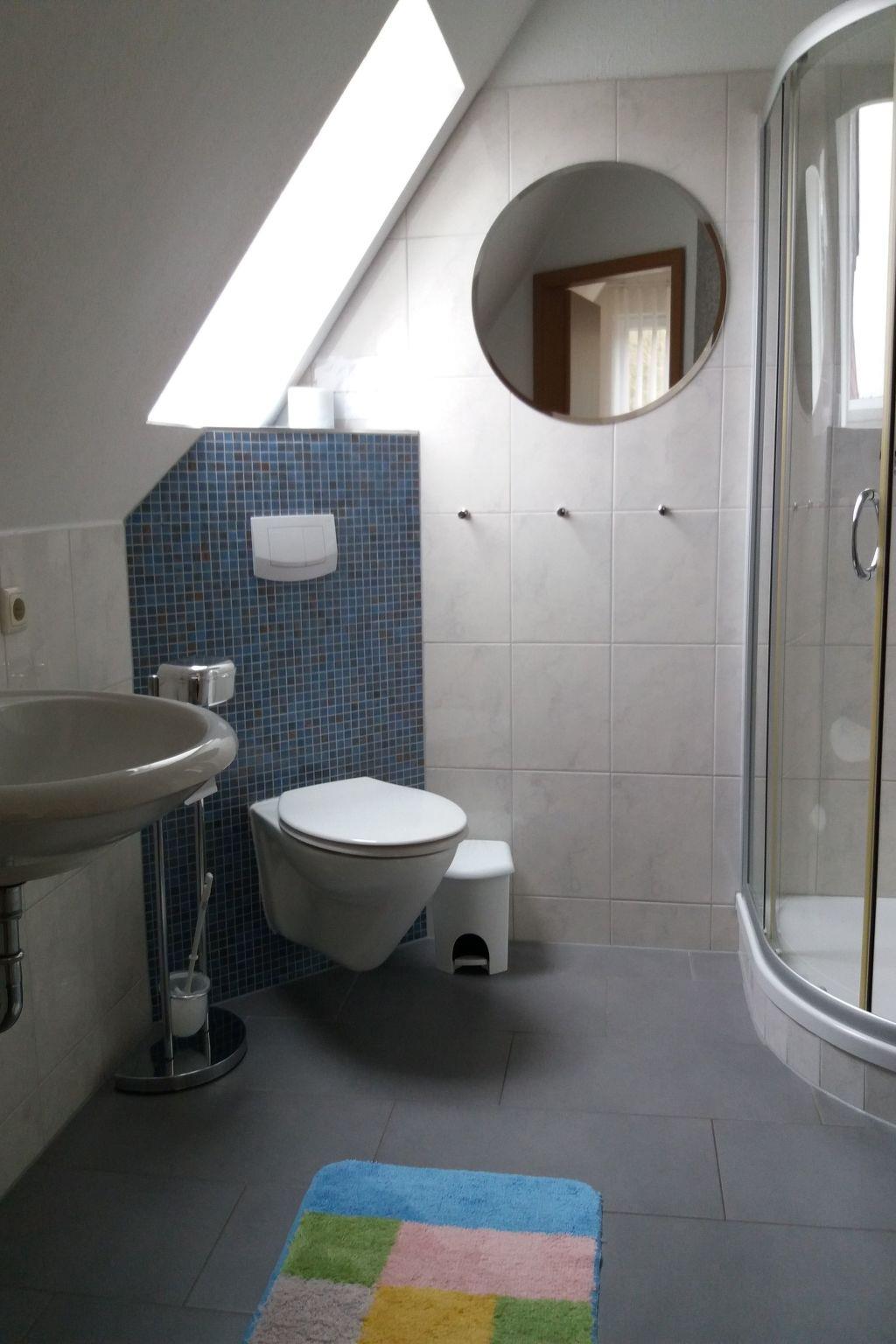 Your holiday home is located directly on Lake Plau in the "Seelust" district in the middle of a privileged villa area. The holiday home "Haus am Seeufer" extends over 2 floors, comfortably and tastefully furnished. Living/dining room on the ground floor with DVD + CD player, radio, satellite TV. Kitchen on the ground floor, cooker with ceramic hobs and oven, dishwasher, coffee machine, fridge with three freezer compartments, microwave and kettle. A shower/WC is located on the ground floor. In the living area there are two comfortable armchairs and a pull-out sofa bed.