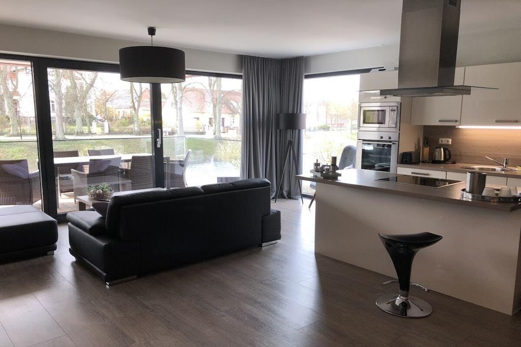 Spend your vacation in our modern Eldeufer apartment in a fantastically beautiful location, quietly located but still central to the idyllic listed old town! The building was lavishly built in 2013 in the Bauhaus style. The apartment is on the first floor. It is comfortably and tastefully furnished with a whirlpool, fireplace and infrared cabin and is only 500 meters from Lake Plau. The luxurious apartment has a 30 sqm terrace that gives you a unique panoramic view from the sensational Plau lift bridge to the historic chicken ladder and the lock. Passing water hikers on the Müritz-Elde waterway take you far away from everyday life... Bathing in the Elde directly in front of the house is also very popular with the locals because of the excellent water quality. The extremely popular health resort of Plau am See has a very beautiful promenade for strolling, past the town harbor, various restaurants and ice cream parlors, the Müritz fishermen with fresh fish and all the way to the lighthouse at the peat bog. Bicycles can be parked in the yard. After loading and unloading in front of the house, you can use the public parking spaces not far away. On the ground floor of the house, Zeisler's dining room offers you fine specialties in a cozy ambience and relaxed atmosphere. We look forward to your visit! Your host Jeanette Erdmann