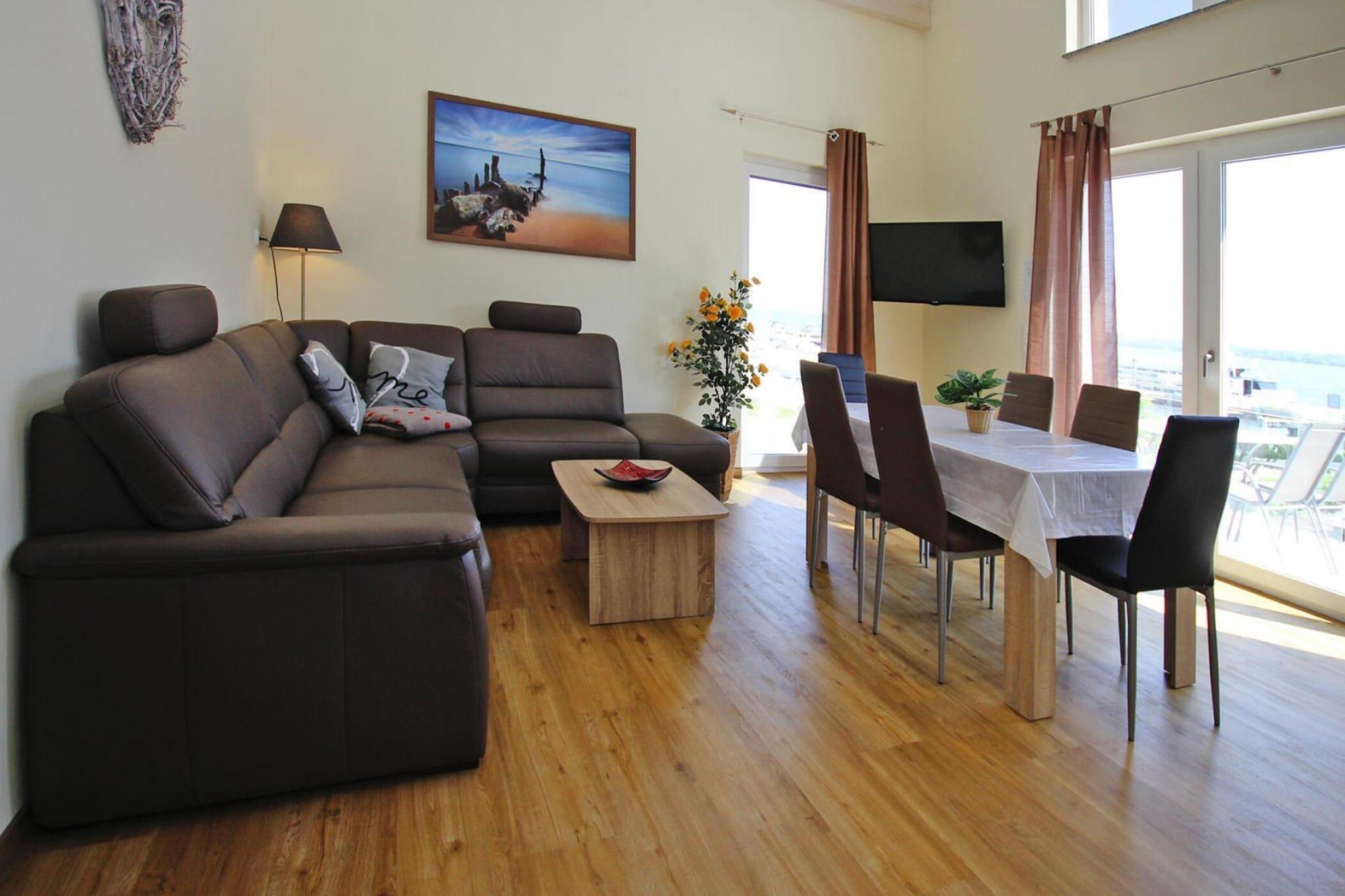 Helt nybyggt takhus med högkvalitativ möblerad lägenhet direkt vid fritidsbåtshamnen i den före detta fiskestaden Plau am See. Båtuthyrning finns precis utanför dörren och du kan njuta av en underbar utsikt över sjön från balkongen i ditt bekväma semesterhus. Centrum och gamla stan i den charmiga staden och klimatkurorten Plau am See kan nås till fots härifrån. Olika restauranger och kaféer serverar specialiteter från Mecklenburg och små butiker inbjuder dig att surfa. Det finns också sevärdheter som är värda att se som Plaus slottstorn från 1449 med sin djupa fängelsehåla och smala stigning, den välkända lyftbron från 1916 och stadskyrkan från 1200-talet, som kan ses på långt håll. Höjdpunkter ingår: Alla förbrukningsbaserade energikostnader Strö TRÅDLÖS INTERNET Aktiviteter i närheten: Åk på en guidad fisketur eller en båttur, ta en tur på ett av passagerarfartygen eller upptäck sjön på en paddlingstur - alternativen är otroligt varierande! Om du föredrar att hålla fötterna torra kan du ta en stadsrundtur på den lilla Plauer Bahn eller upptäcka landskapets skönhet på en cykeltur eller en tur med häst och vagn. De med sportsliga ambitioner kan testa sina färdigheter i klätterparken. Utflyktstips: Björnskogen Müritz, Wangelinerträdgården och Lübzer Kunstspeicher.
