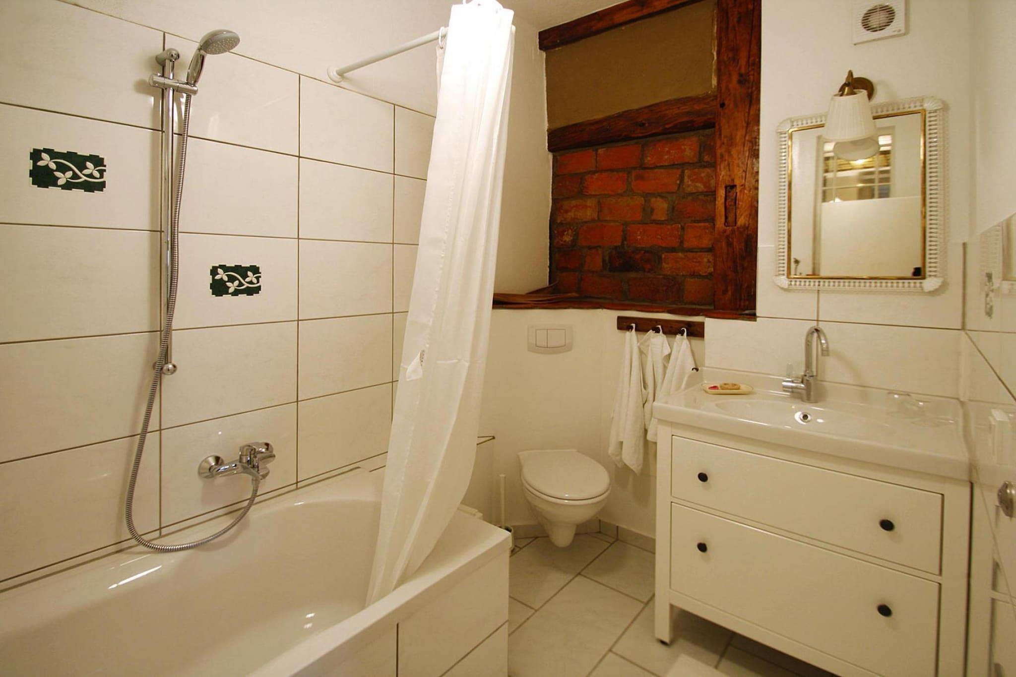 Ljus och smakfullt inredd semesterlägenhet i vackert renoverat korsvirkeshus mitt i den lilla fiskestaden Plau am See. På husets bottenvåning ligger hyresvärdinnans mysiga "osthörna", där du kan smaka på fina viner, olika ostspecialiteter och små utsökta rätter. Bistrons vackert designade innergård inbjuder dig att tillbringa avkopplande kulinariska timmar utomhus. Plau am See är inte bara en klimatkurort, utan också en särskilt charmig stad. Den pittoreska gamla staden ligger direkt på västra stranden av Tysklands sjunde största sjö - Lake Plauer - och vid Müritz-Elde vattenvägar. Upptäck mysiga restauranger och vackra butiker, upplev spännande kulturevenemang och njut av den vackra naturen runt Plau från vattnet. Höjdpunkter: Förbrukningsbaserade energikostnader, sänglinne, handdukar och slutstädning ingår 1 flaska vin, 1 paket pasta och olivolja vid ankomst till lägenheten 15 % rabatt på uthyrning av Müritzfischer-båtar på deras fiskevarv i Plau am See, Krakow am See och Waren Aktiviteter i närheten: Den populära semesterorten kännetecknas av ett överflöd av naturälskande aktivitetsalternativ som sötvattensfiske, båtturer med passagerarfartyg, kanotturer och kilometerlånga cykelvägar. Fascinerande flora och fauna kan upptäckas på långa promenader och vandringar. Välj mellan många utflyktsmål till historiska slott och sagoslott, museer värda att se och regionens lugna platser. Besök i apskogen med sommarpulkabacke och björnskogen är bra för barn.