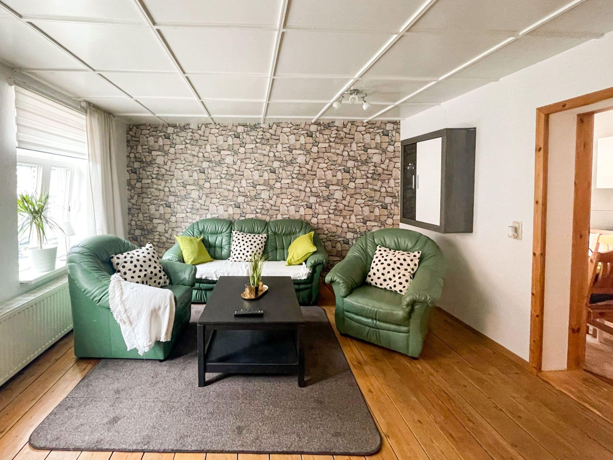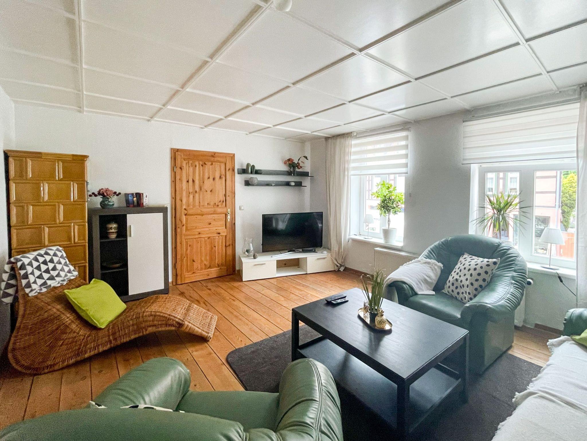 Die charmante Ferienwohnung Anneliese liegt im Obergeschoss eines Fachwerkhauses und ist über eine steile zu erreichen. In den zwei behaglichen Schlafzimmern findest du erholsamen Schlaf: Das eine ist mit einem bequemen Doppelbett (140x200) ausgestattet, das andere mit zwei Einzelbetten (90x200). Das Wohnzimmer lädt mit seinem gemütlichen Sofa und dem TV zu entspannten Abenden ein, an denen du die Erlebnisse des Tages in Ruhe genießen kannst. Die separate Küche bietet dir alles, was du für die Selbstverpflegung brauchst: Herd, Backofen, alle wichtigen Küchenhelfer und sogar eine Waschmaschine, falls du einen längeren Aufenthalt planst. Das moderne Bad mit Dusche und WC sorgt dafür, dass du dich rundum wohlfühlen kannst.