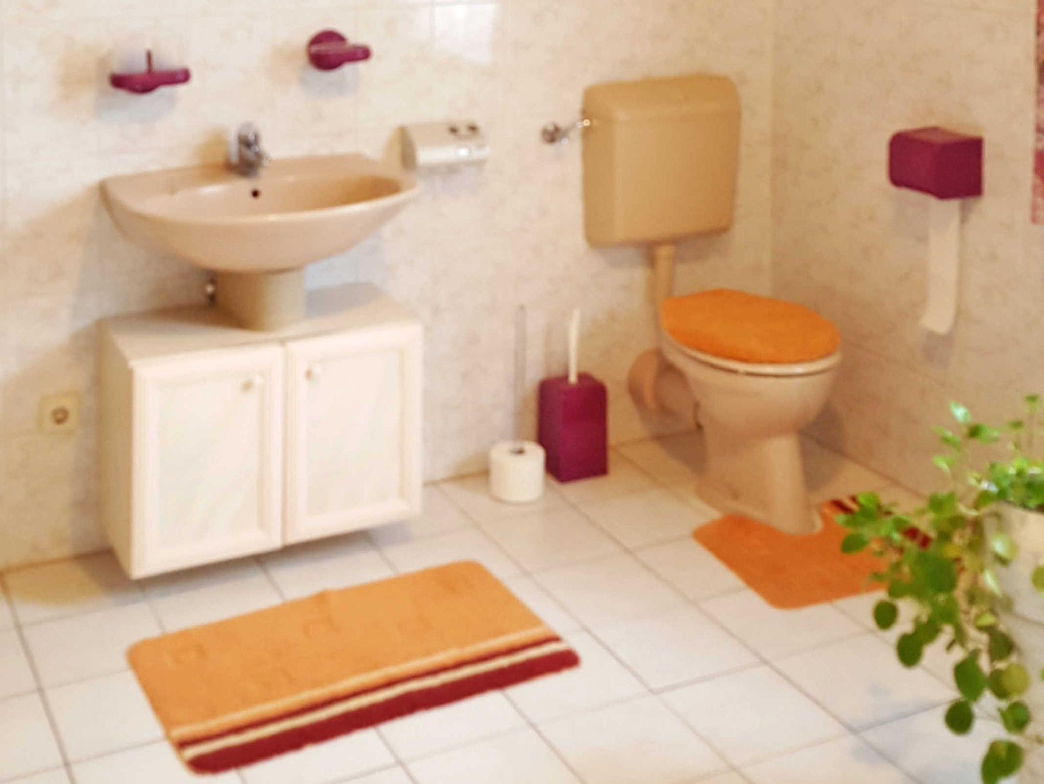 Die Ferienwohnung befindet sich im Obergschoss eines Einfamilienhauses, ist über eine Wendeltreppe erreichbar und teilt sich in Wohnraum, Schlafzimmer und Badezimmer ein. Das Wohnzimmer ist mit Couch, TV und einer Küchenzeile ausgestattet. Zur Küchenzeile gehören ein 2-Platten-Herd, Kühlschrank, Mikrowelle, Kaffeemaschine, Wasserkocher und Toaster. Im Schlafzimmer befindet sich neben einem Doppelbett (180x200, getrennte Matratzen) und einem Einzelbett (80x200) auch ein Kleiderschrank, in dem Sie Ihre Kleidung unterbringen können. Das Badezimmer verfügt über Waschbecken, WC und eine Dusche.