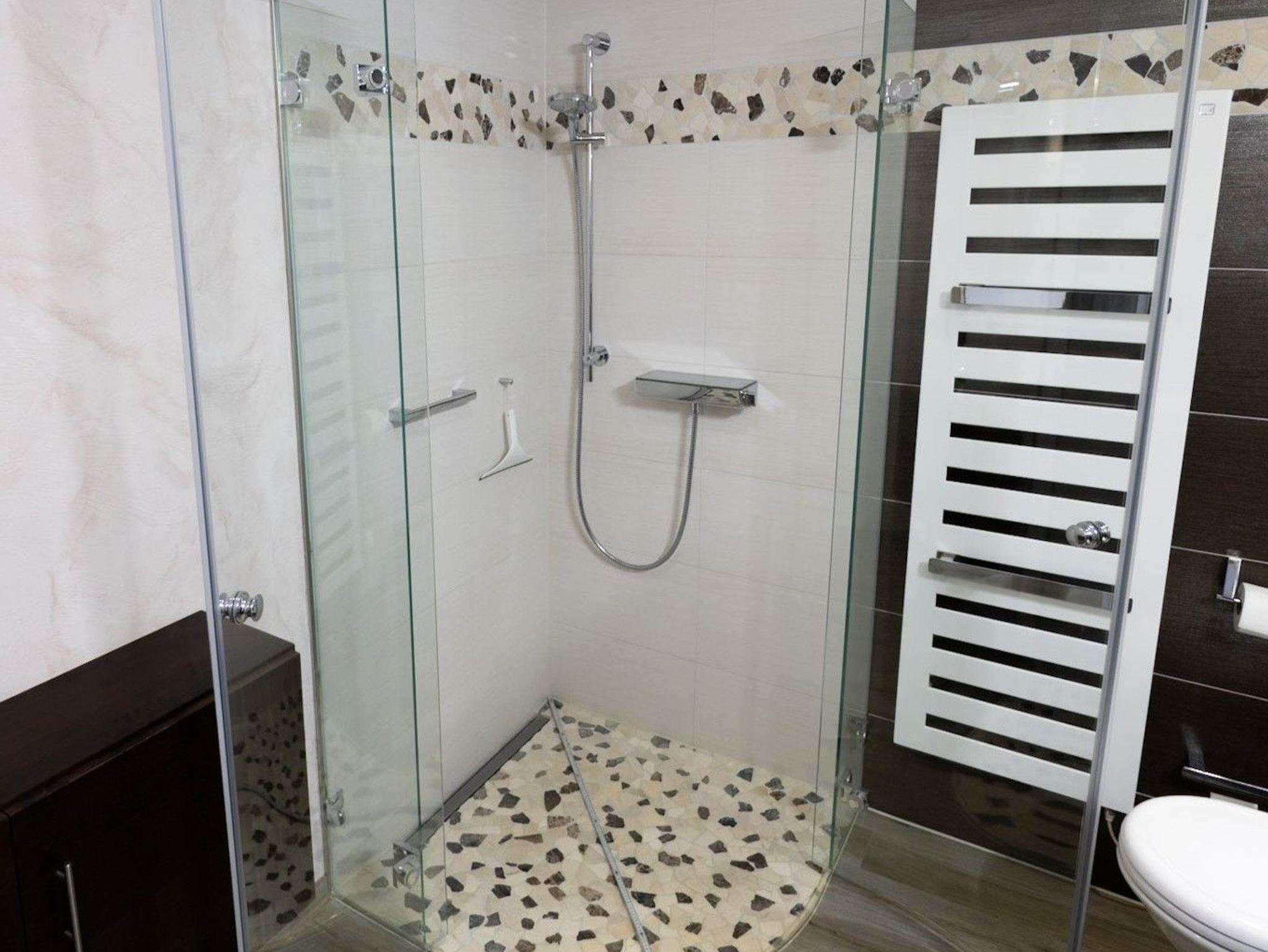 Das gemütliche Schlafzimmer ist Ihr persönlicher Rückzugsort. Es verfügt über ein komfortables Doppelbett und ein separates, modernes Bad, das mit hochwertigen Armaturen und einer entspannenden Dusche ausgestattet ist. Hier können Sie nach einem erlebnisreichen Tag am See wunderbar zur Ruhe kommen.