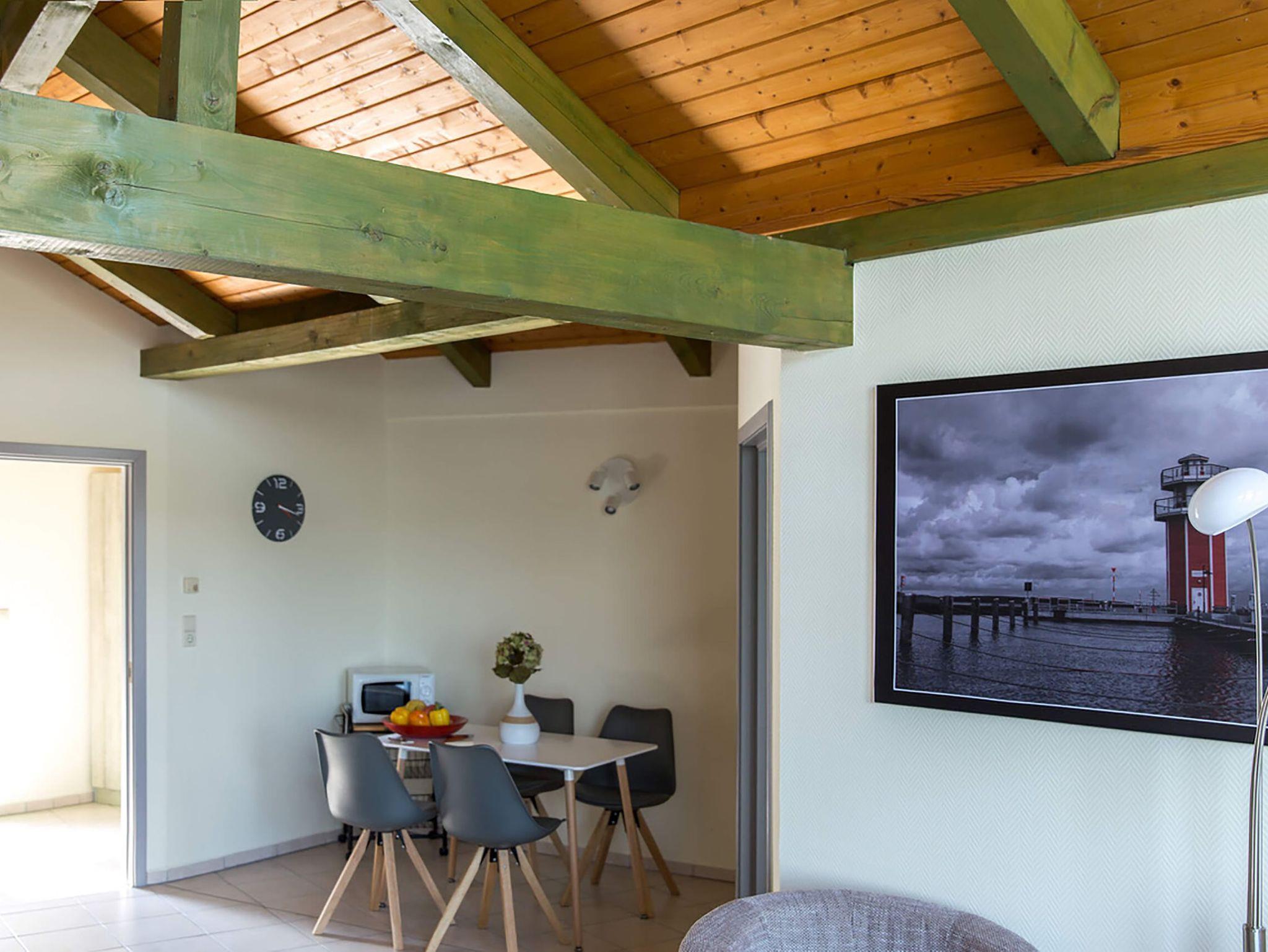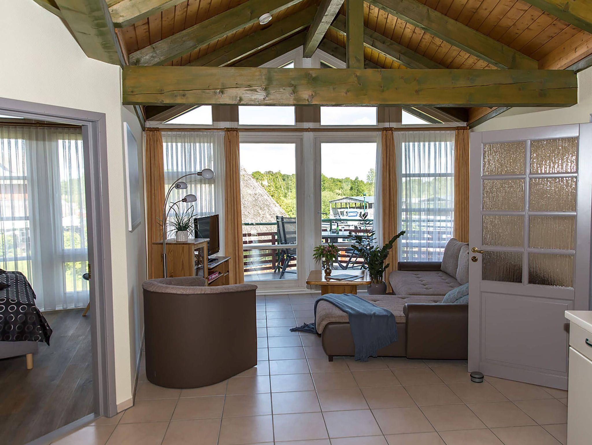Die Appartementwohnungen befinden sich in architektonisch anspruchsvollen Rundbauten mit raffiniertem Zuschnitt, Sie öffnen sich zum Licht. Einige Appartements besitzen einen Balkon bzw. Terrasse oder Wasserblick. Weitere Annehmlichkeiten sind der Parkplatz direkt vor der Tür, die Sauna und das Solarium im Haus, für kalte Tage die behagliche Fußbodenheizung, der kostenlose Brötchenservice und nicht zu letzt die familiäre Betreuung.