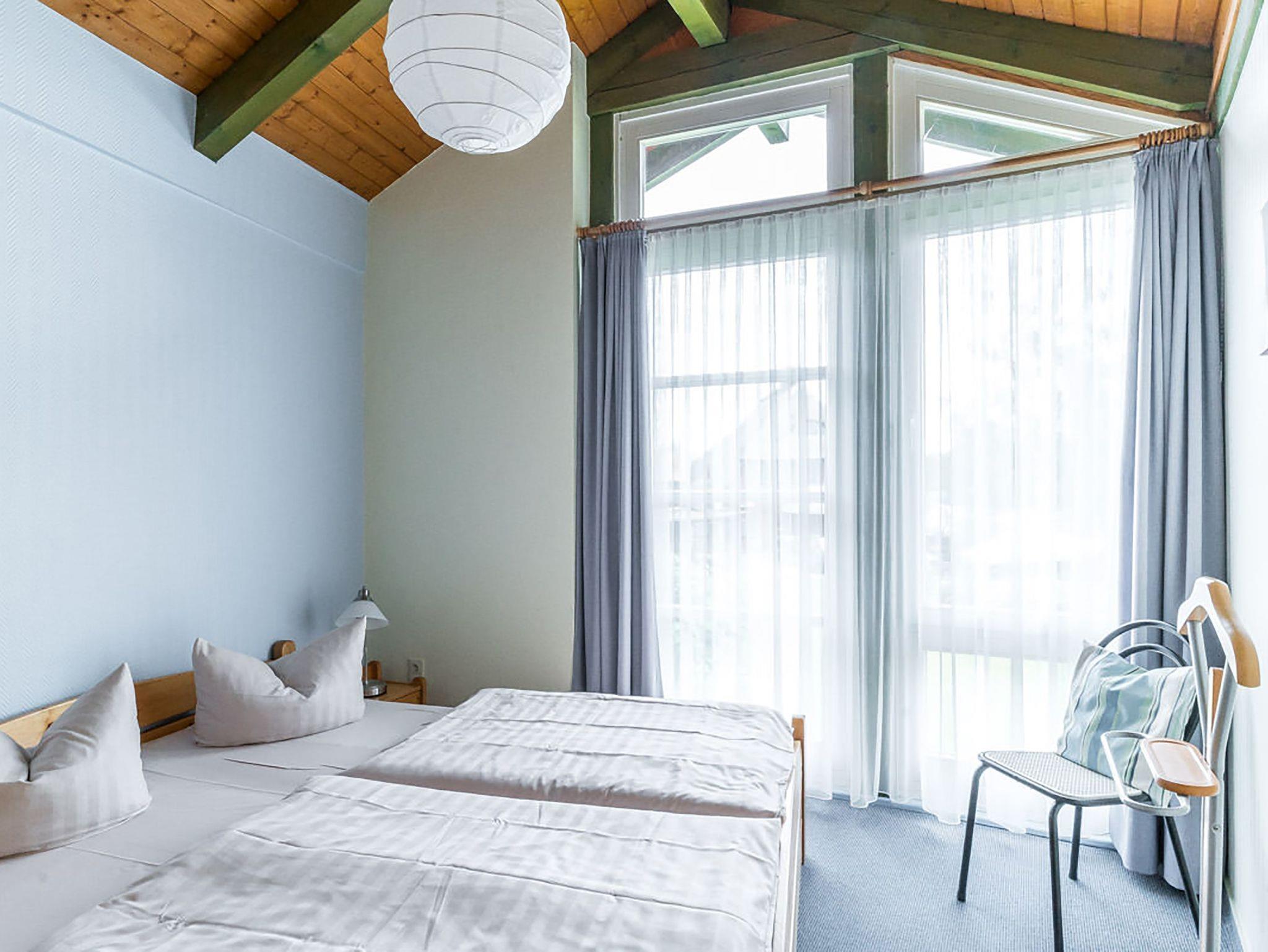 Es stehen ein Schlafzimmer mit Doppelbett (180x200; getrennte Matratzen), ein Schlafzimmer mit 2 Einzelbetten (90x200) und im Wohnraum eine Schlafcouch als Aufbettungsmöglichkeit für max. 2 Personen zur Verfügung.