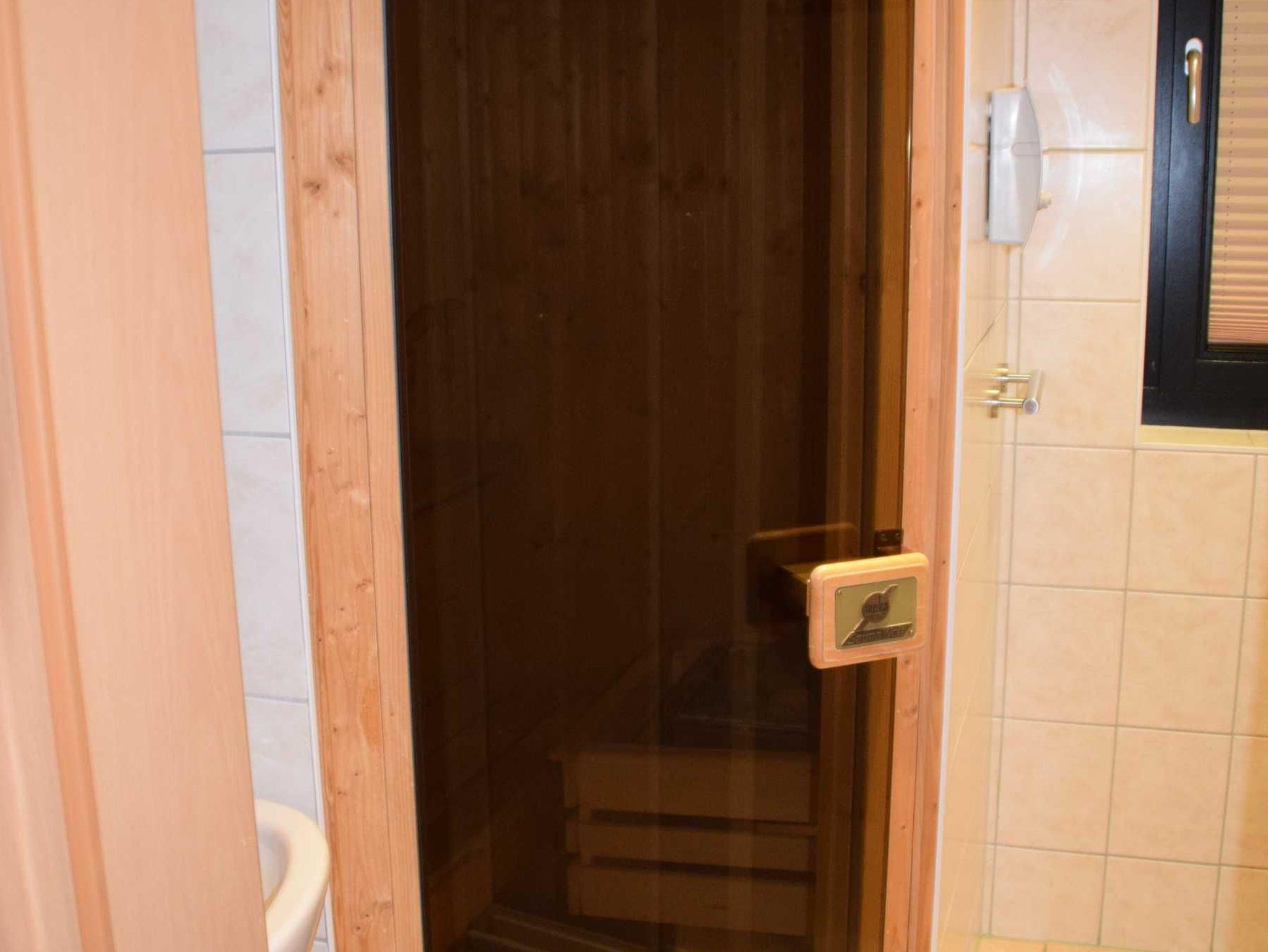 Im EG befindet sich ein Duschbad mit Sauna, ein SZ mit einem Doppelbett und die Küche mit Wohn -und