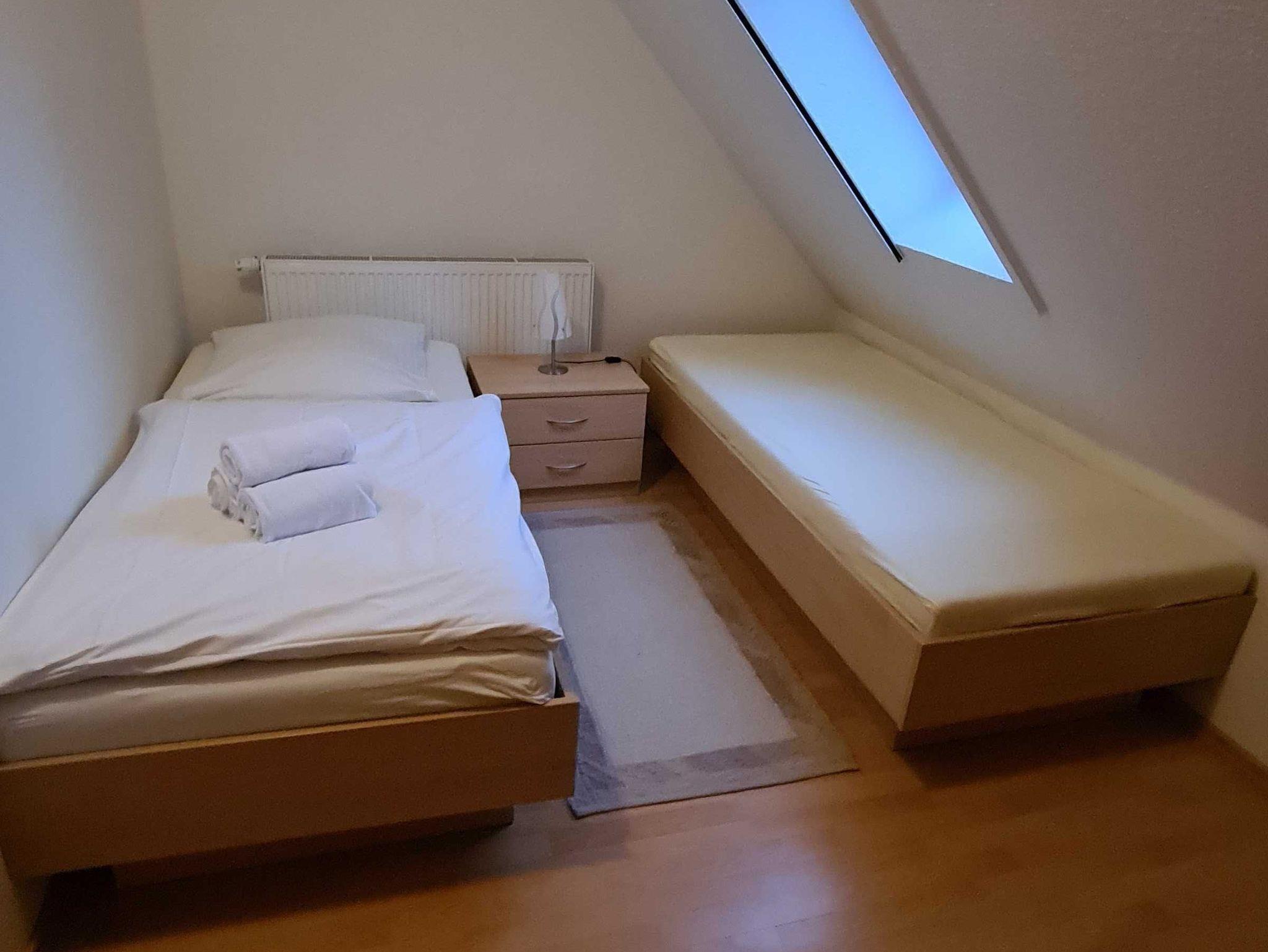 aufs Wasser. Nebenan ein SZ mit 2 Einzelbetten und ein Wannenbad mit Waschmaschine und Trockner.