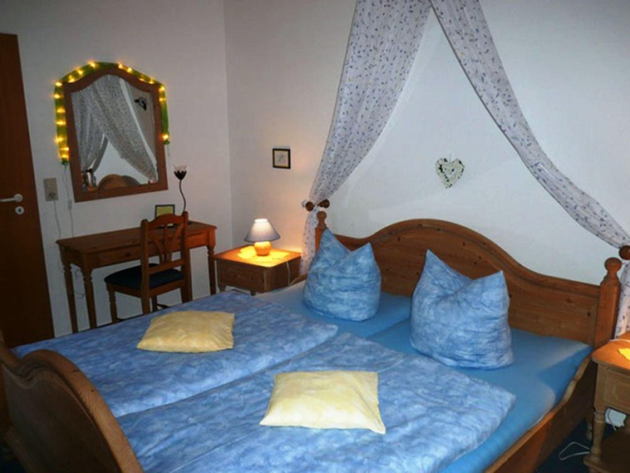 Das liebevoll eingerichtete Appartement 5 verfügt über einen separaten Eingang und ist mit allem Komfort ausgestattet. Der Wohnraum ist mit viel Liebe und Geschmack eingerichtet, ein TV, ein Radio, ein Telefon sowie kostenfreies WLANgehören zur Ausstattung. Zum Appartement gehören 2 Schlafräume, ein SR mit einem Doppelbett und ein SR mit 2 Einzelbetten. Die komplett eingerichtete Küche mit Essecke verfügt u.a. über eine Spülmaschine, einen Kühlschrank, eine Mikrowelle und eine Kaffeemaschine. Das Badezimmer ist mit Dusche und WC ausgestattet, Handtücher sind im Preis enthalten.Die Mitnahme eines Haustieres ist erlaubt. Es werden 10,00 € pro Nacht berechnet.