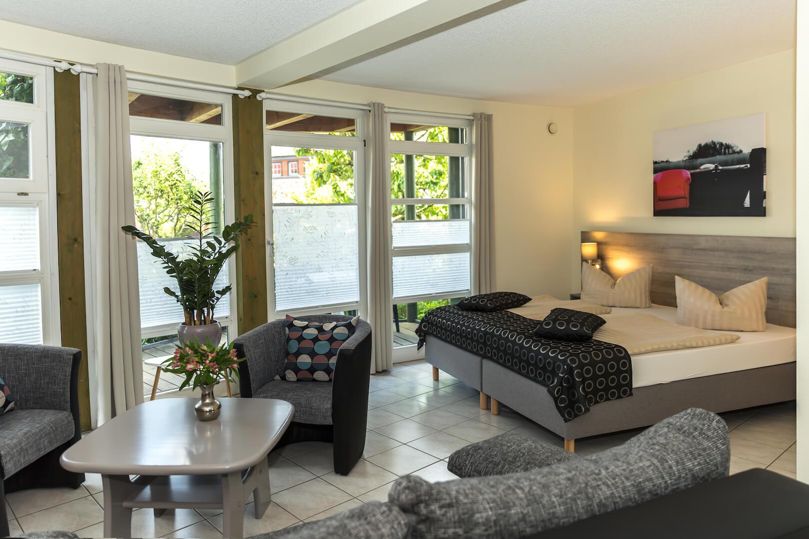 - Wohn- und Schlafbereich mit Doppelbett