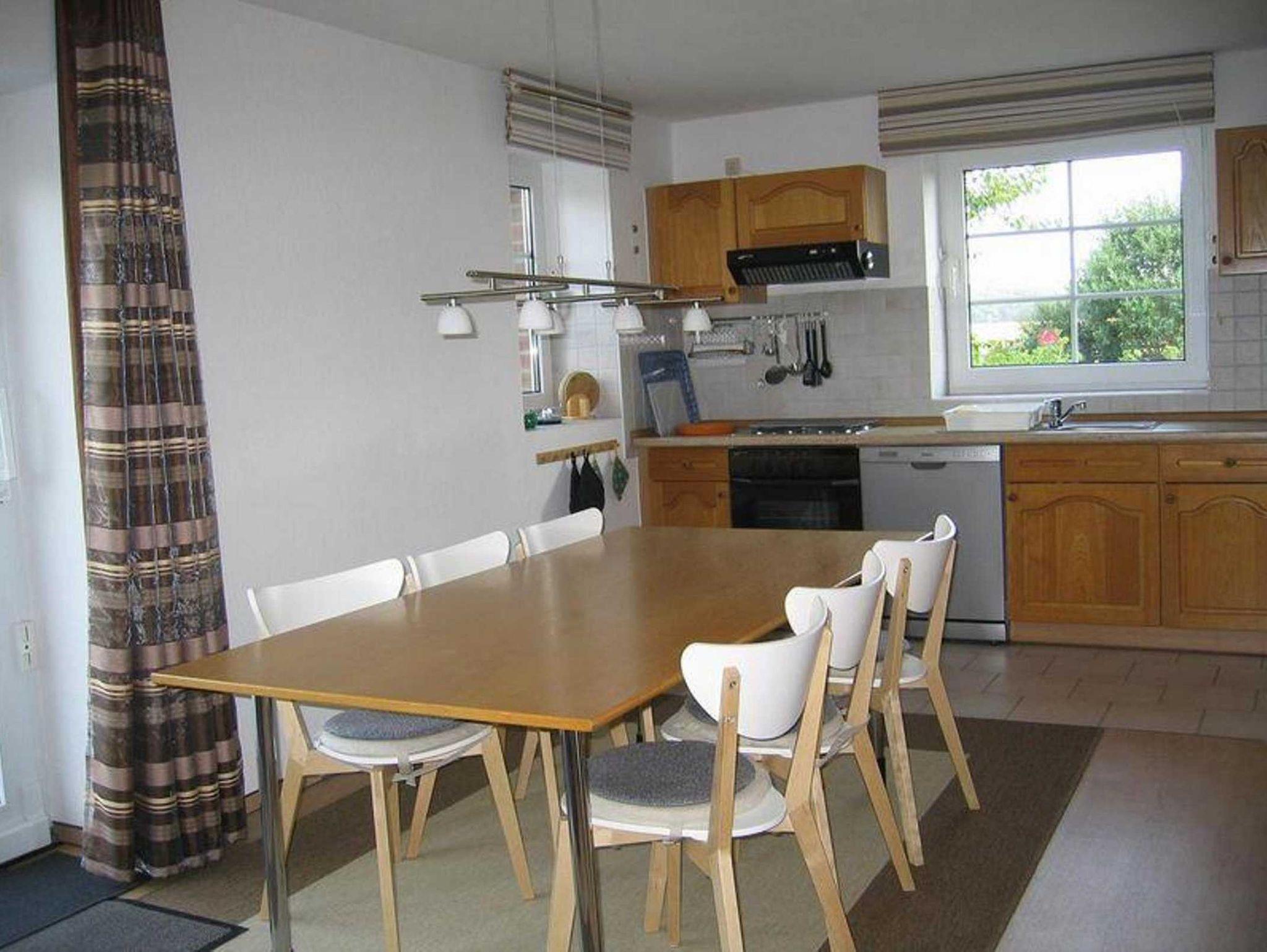 Die ebenerdige Ferienwohnung besteht aus 1 Wohn- und 3 Schlafräumen und bietet Platz für 6 Personen. Im Wohnraum befindet sich ein Kamin, sowie die Küchenzeile. Das Badezimmer ist mit Dusche und Badewanne ausgestattet.