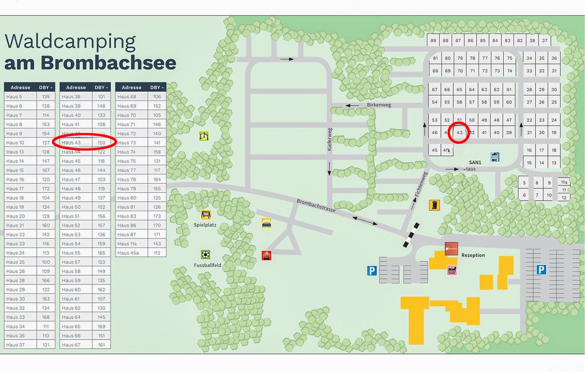 Waldcampingplatz am Brombachsee har ett idylliskt läge bara 800 meter i kråkfågelvägen (ca 20 minuters promenad) från Großer Brombachsee. Den lämpar sig utmärkt för en semester i naturen med bad, vandring och cykling.