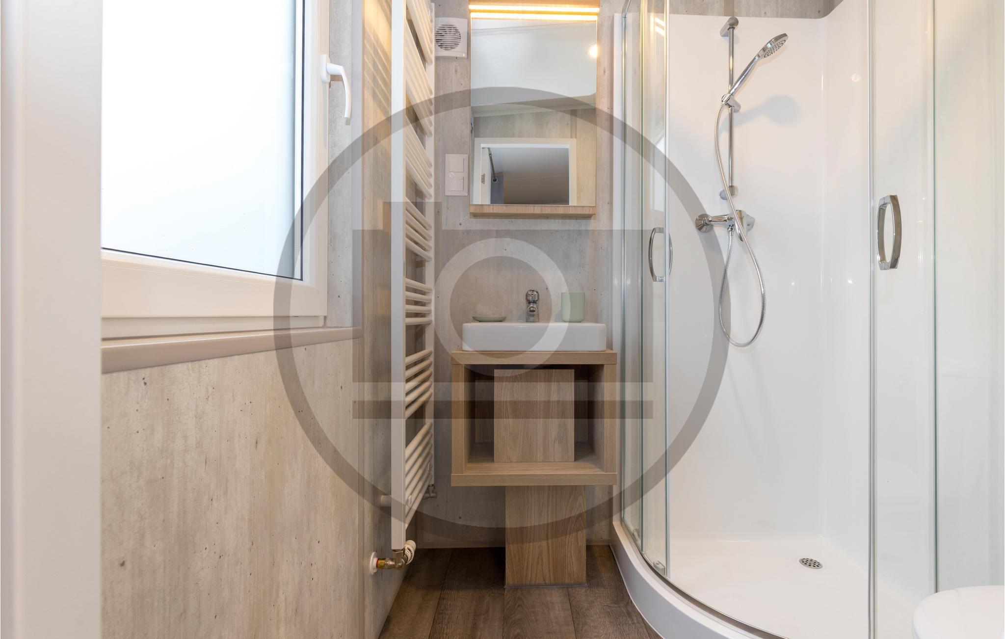Det mysiga vardagsrummet med bäddsoffa, matplats och ett välutrustat pentry bjuder in dig att tillbringa tid tillsammans med din familj. Det separata sovrummet är en underbar plats att drömma på. Sovsoffan i vardagsrummet är 170 cm lång och passar därför endast barn. Tiny House har dessutom ett eget badrum med dusch.