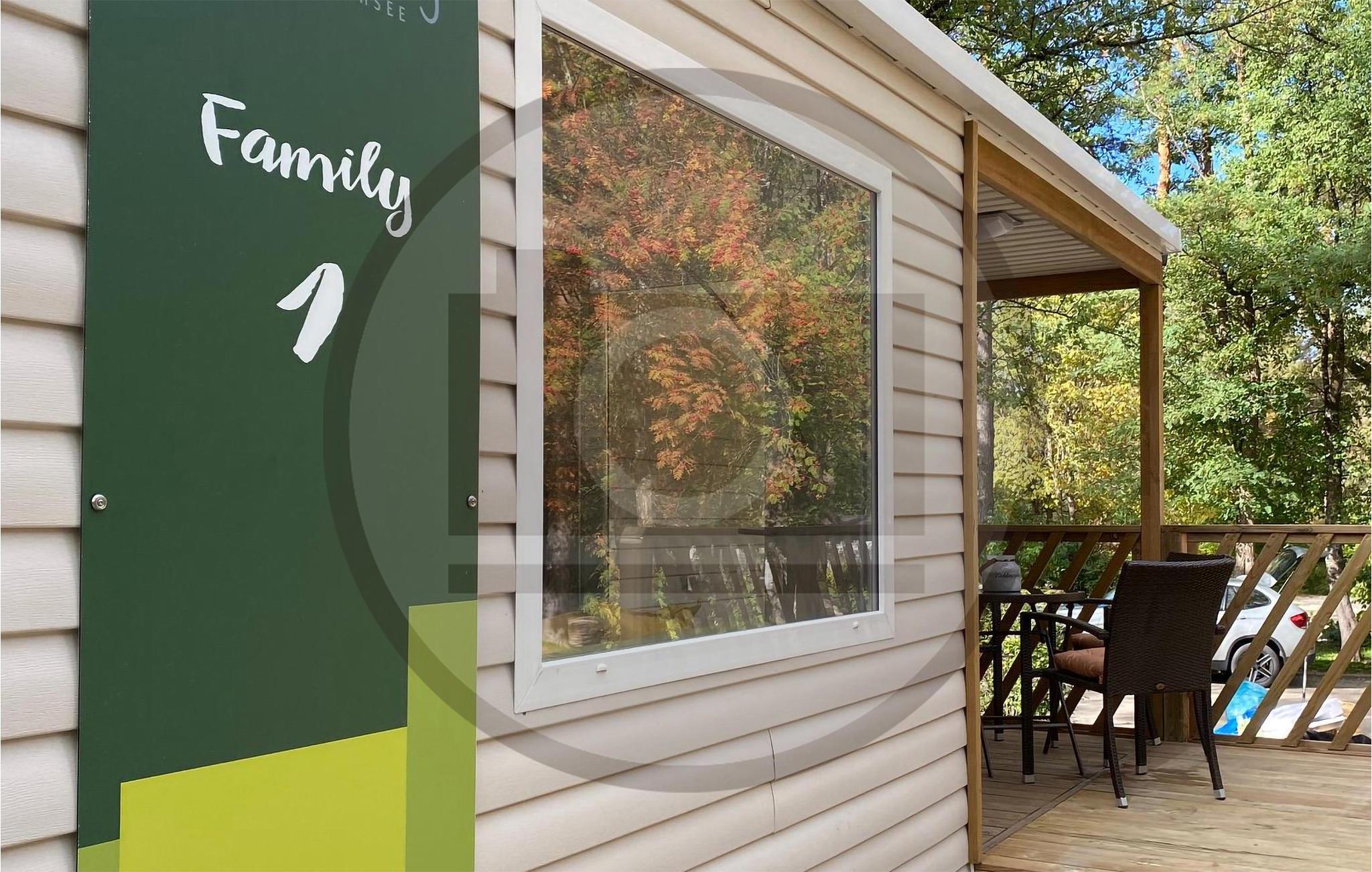 Skogscampingen ligger i ett lugnt läge, omgiven av det pittoreska landskapet i Franconian Lake District och inte långt från den vackra sjön Brombachsee. Tiny House är funktionellt, modernt och inrett med högkvalitativa material. Det mysiga vardagsrummet inbjuder dig att tillbringa tid med familjen, äta tillsammans utan stress och göra dig bekväm i soffan på kvällen.