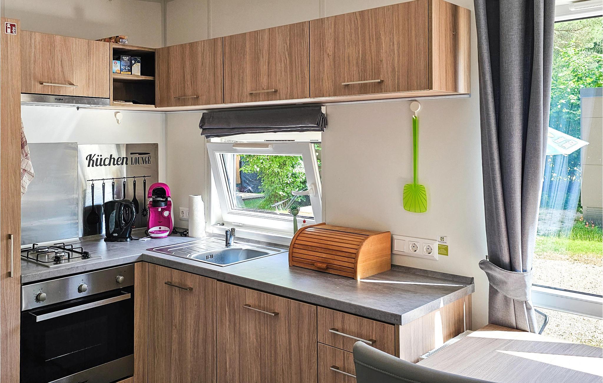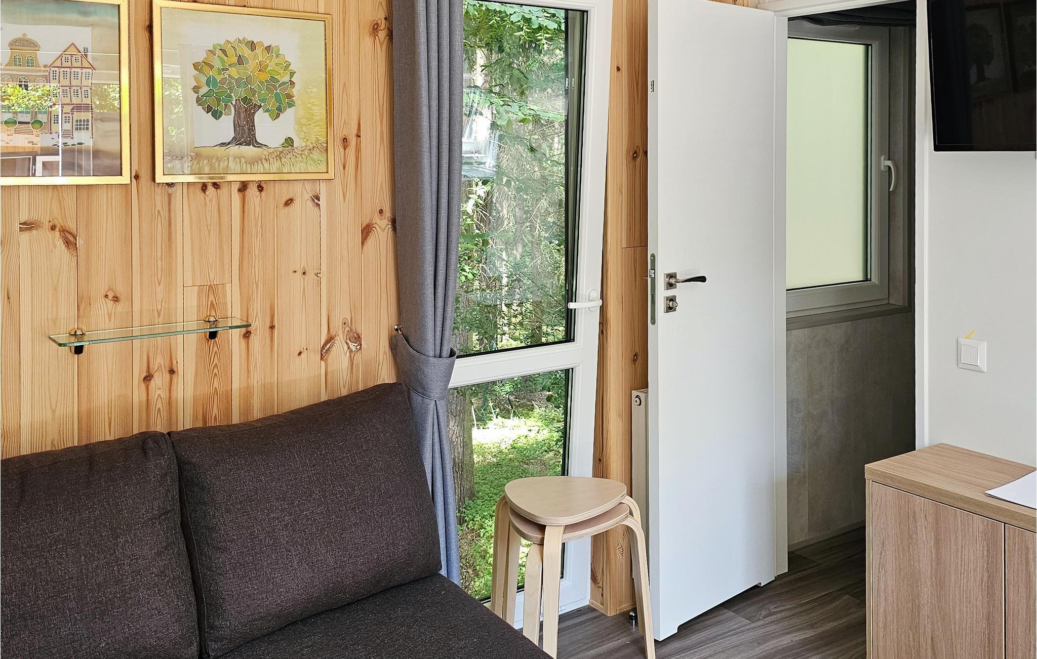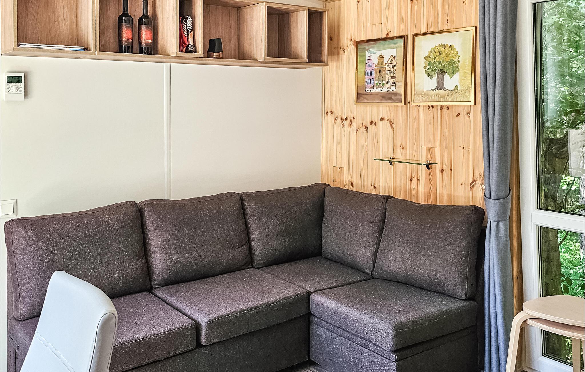 Waldcampingplatsen har ett lugnt läge, omgiven av det pittoreska landskapet i Franconian Lake District och inte långt från den vackra sjön Brombachsee. Ditt Tiny House är funktionellt, modernt och inrett med material av hög kvalitet. Det mysiga vardagsrummet inbjuder till att umgås med familjen, äta tillsammans utan stress och buller och göra det bekvämt för sig i soffan på kvällen.