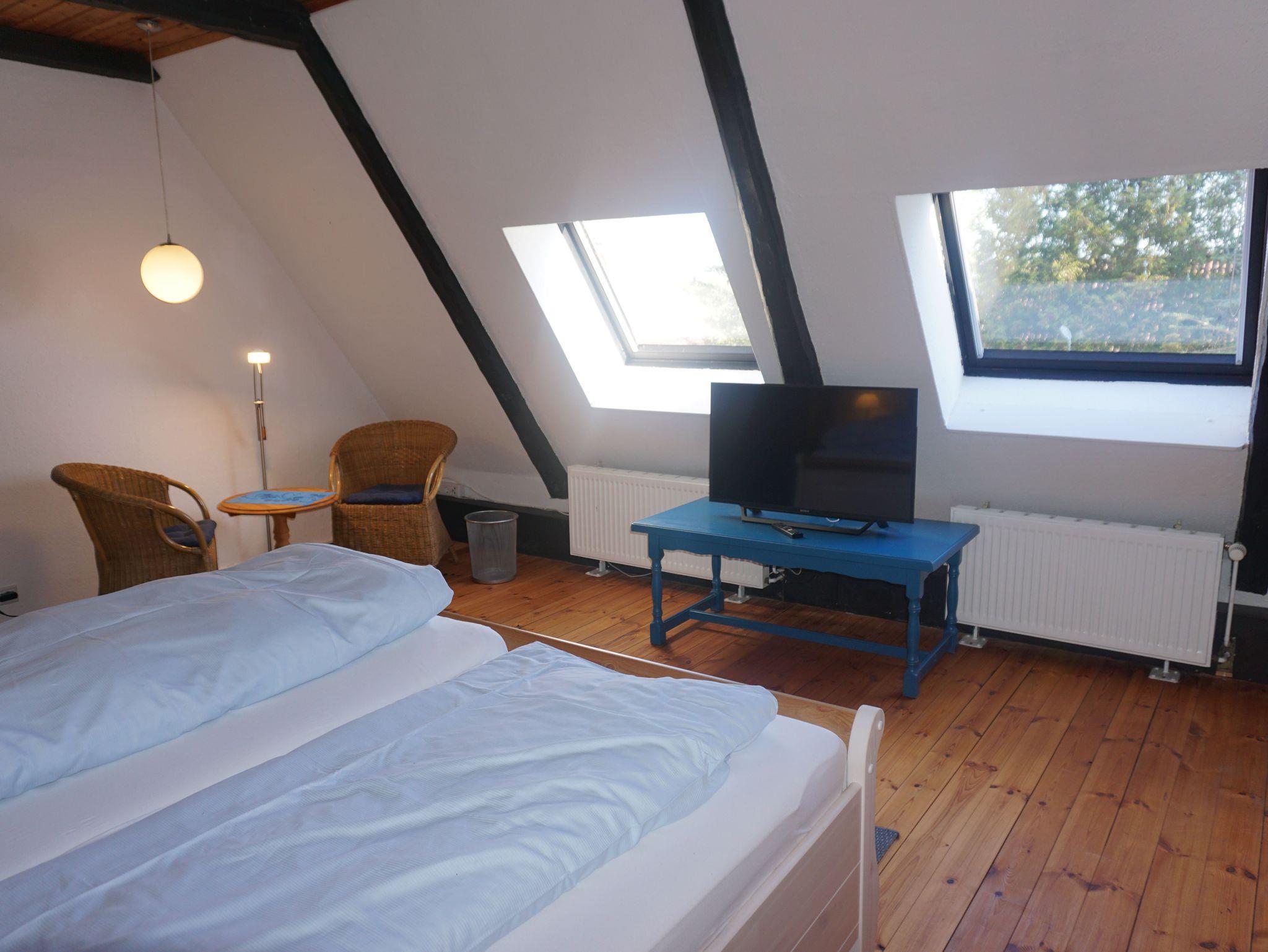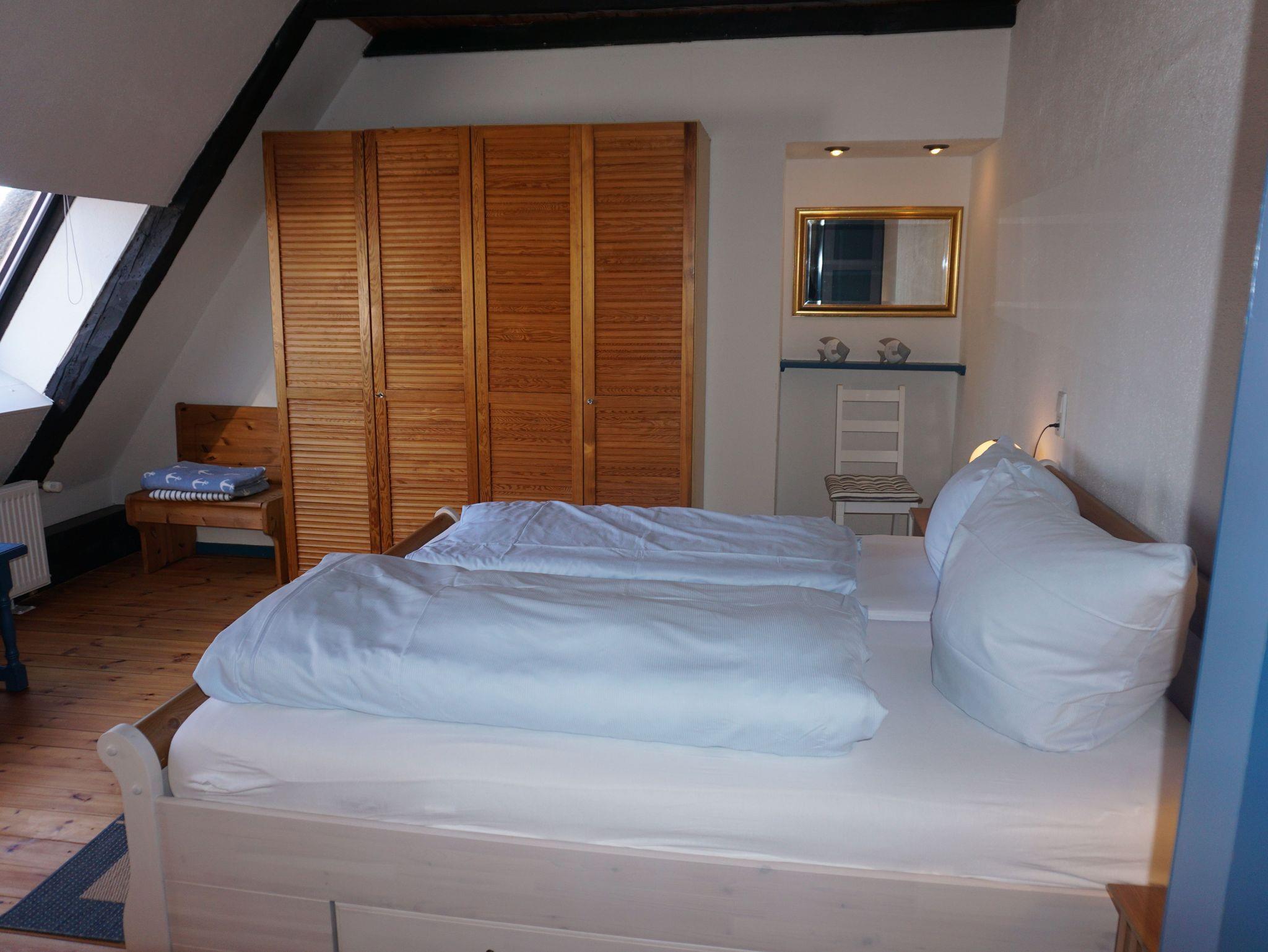 Die 2 Zimmer Fewo. verfügt über 50 m² und befinde sich im Obergeschoß des wunderschönen Reetdachhauses. Im Garten finden Sie 4 Gartenstühle mit Tisch und Sonnenschirm, die zu dieser Ferienwohnung gehören.