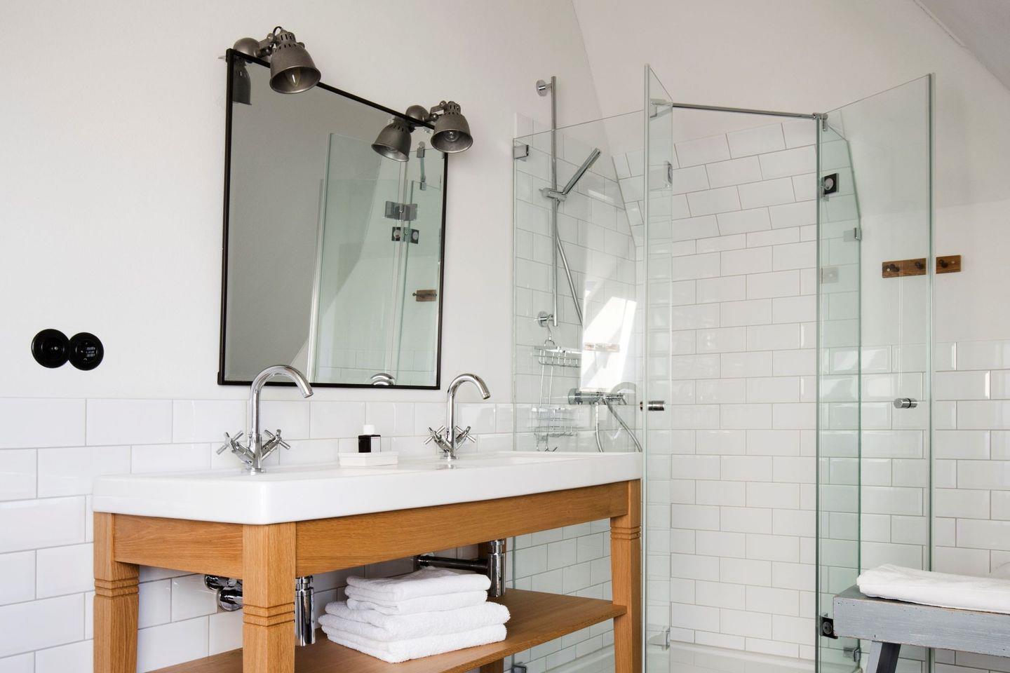 Für moderne Standards sorgen Fernseher, Stereoanlage und WLAN sowie die ebenfalls im Kuhstall angesiedelte Sauna mit Ruheraum und Blick auf den Leuchtturm von Falshöft.