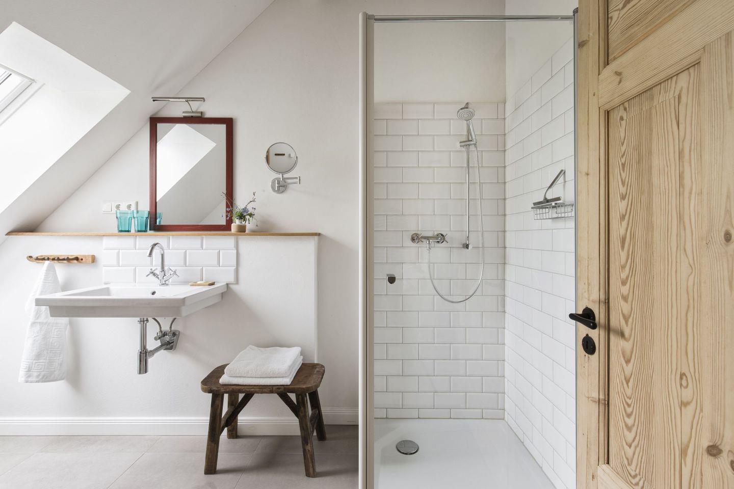 Wie in allen Häusern des Ostseehof Langfeld trifft auch im Caecilienhof Tradition auf Moderne: Betonböden auf alte Küchentische aus dem 19. Jahrhundert, Echtholzböden auf moderne Lampen, Eichentreppen auf Edelstahl-Fronten in der Küche und alte, abgebeizte Türen auf moderne Fliesen. Das gesamte Haus ist mit einer Mischung aus Antiquitäten und neuen Möbeln eingerichtet, was ihm seinen unvergleichlichen Charme verleiht.