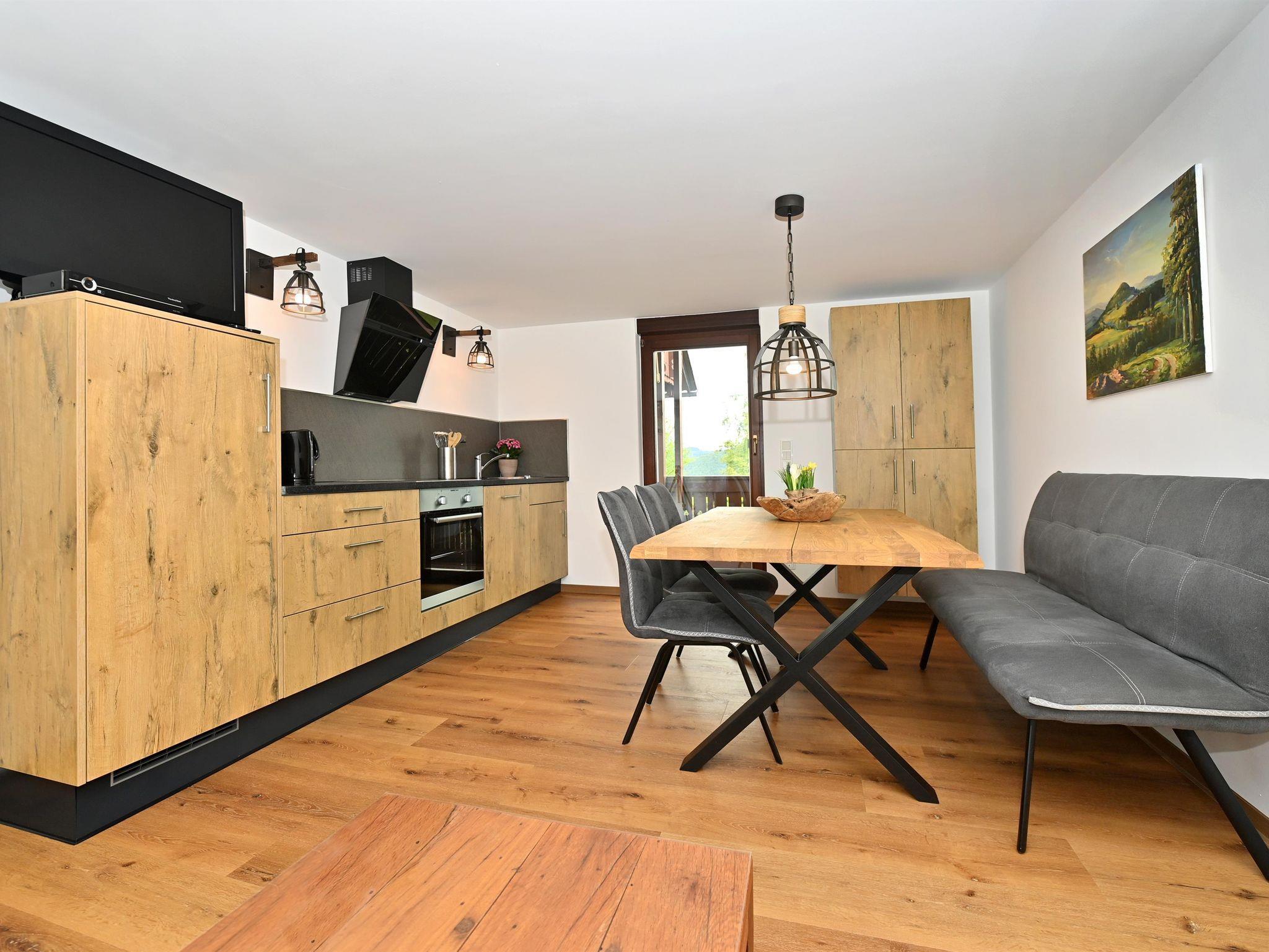 Im modernen Landhausstil eingerichtete Ferienwohnung auf ca. 50qm mit Balkon und Blick auf die Rhöner Berglandschaft insbesondere den Kreuzberg. Platz für 1-5 Personen. Gemütliches Wohn- Esszimmer mit TV. Komplett ausgestattete Küche mit Geschirrspüler, Kühlschrank inkl. Gefrierfach, Herd, Backofen, Wasserkocher und Kaffeemaschine. Schlafzimmer mit Doppelbett. Seperates Schlafzimmer mit einem Doppelstockbett (je 90x200cm). Badezimmer mit Dusche/WC, großem beleuchtetem Spiegel, WLAN und Parkplatz kostenfrei. Frühstück und Brötchenservice buchbar. Alle Wohnungen verfügen über Brandschutztüren und Rauchmeldeanlage. Ski- und Fahrradraum. Poppenhausen ist 4km, Gersfeld 6km entfernt. Bushaltestelle in 3 Gehminuten vom Haus. Shuttleservice buchbar.
