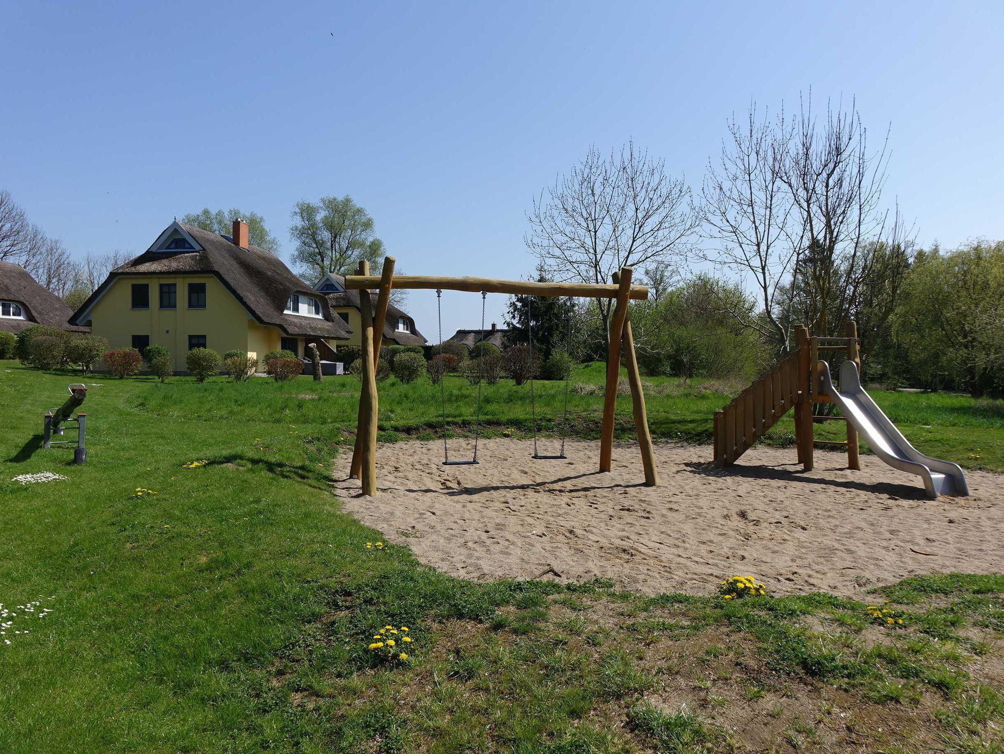 Das reetgedeckte Doppelhaushälfte Weißdorn 1 liegt ruhig und idyllisch in dem kleinen Feriendorf Puddeminer Wiek.